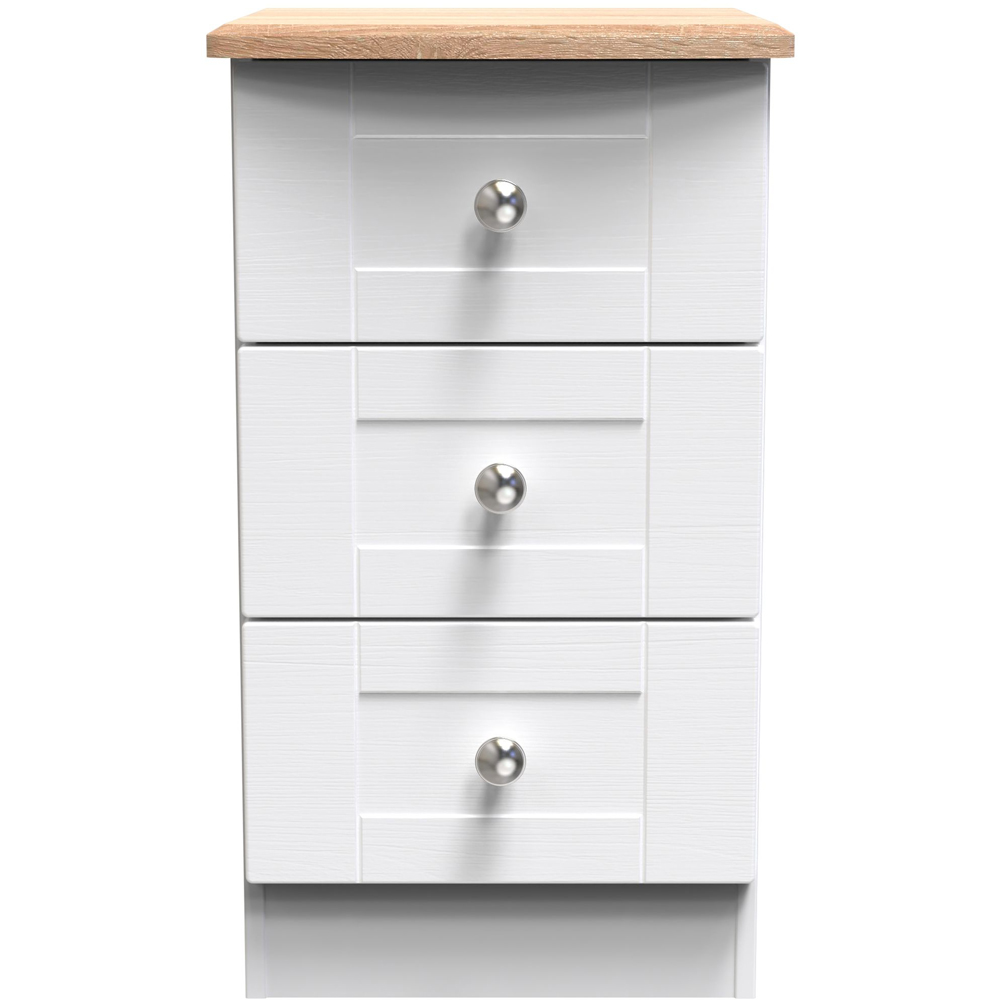 Crowndale Sussex 3 Drawer White Ash and Bardolino Oak Bedside Table Ready Assembled