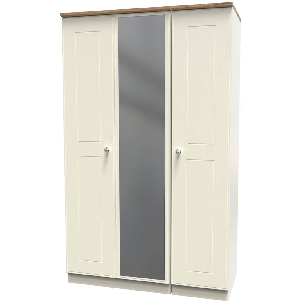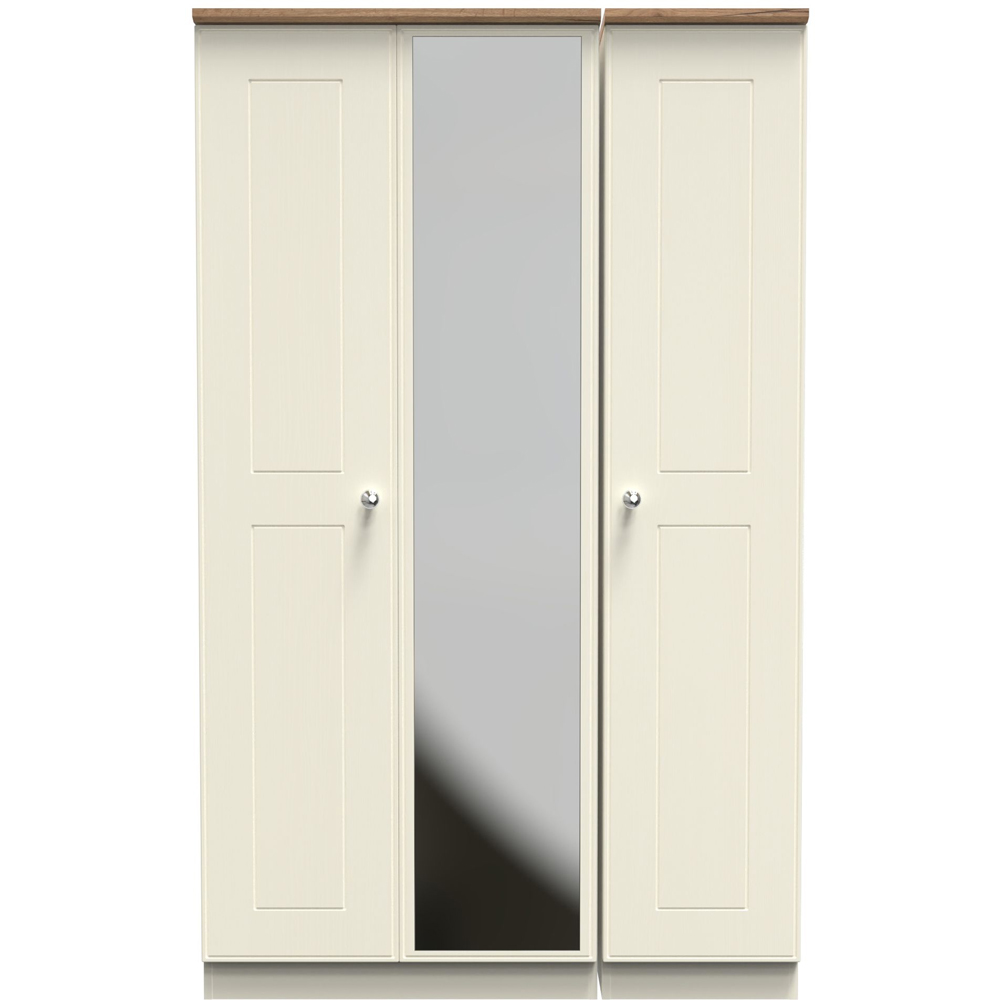 Crowndale Victoria 3 Door Cream Ash and Oak Mirror Wardrobe