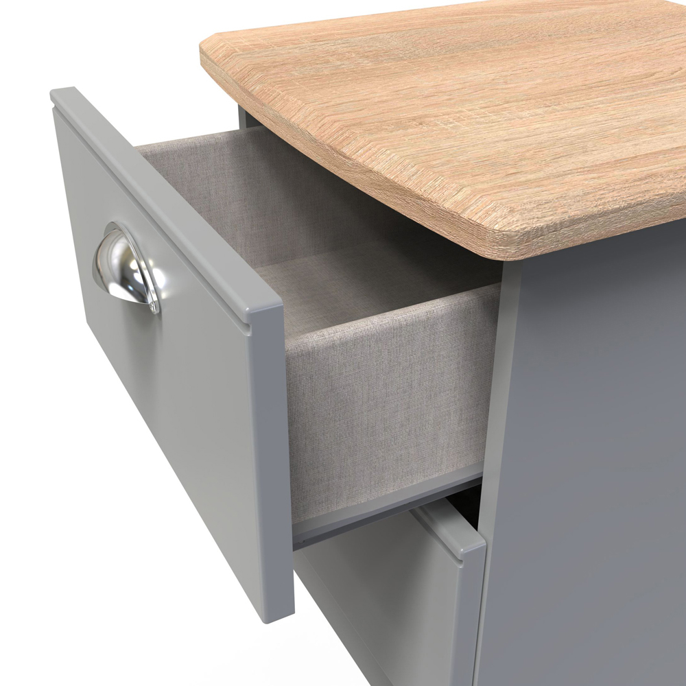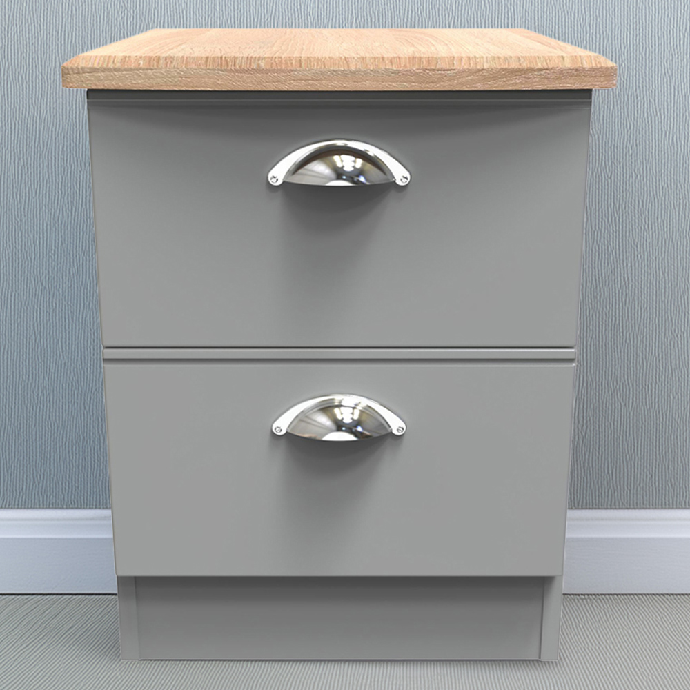 Crowndale Victoria Dusk Grey and Oak 2 Drawer Compact Bedside