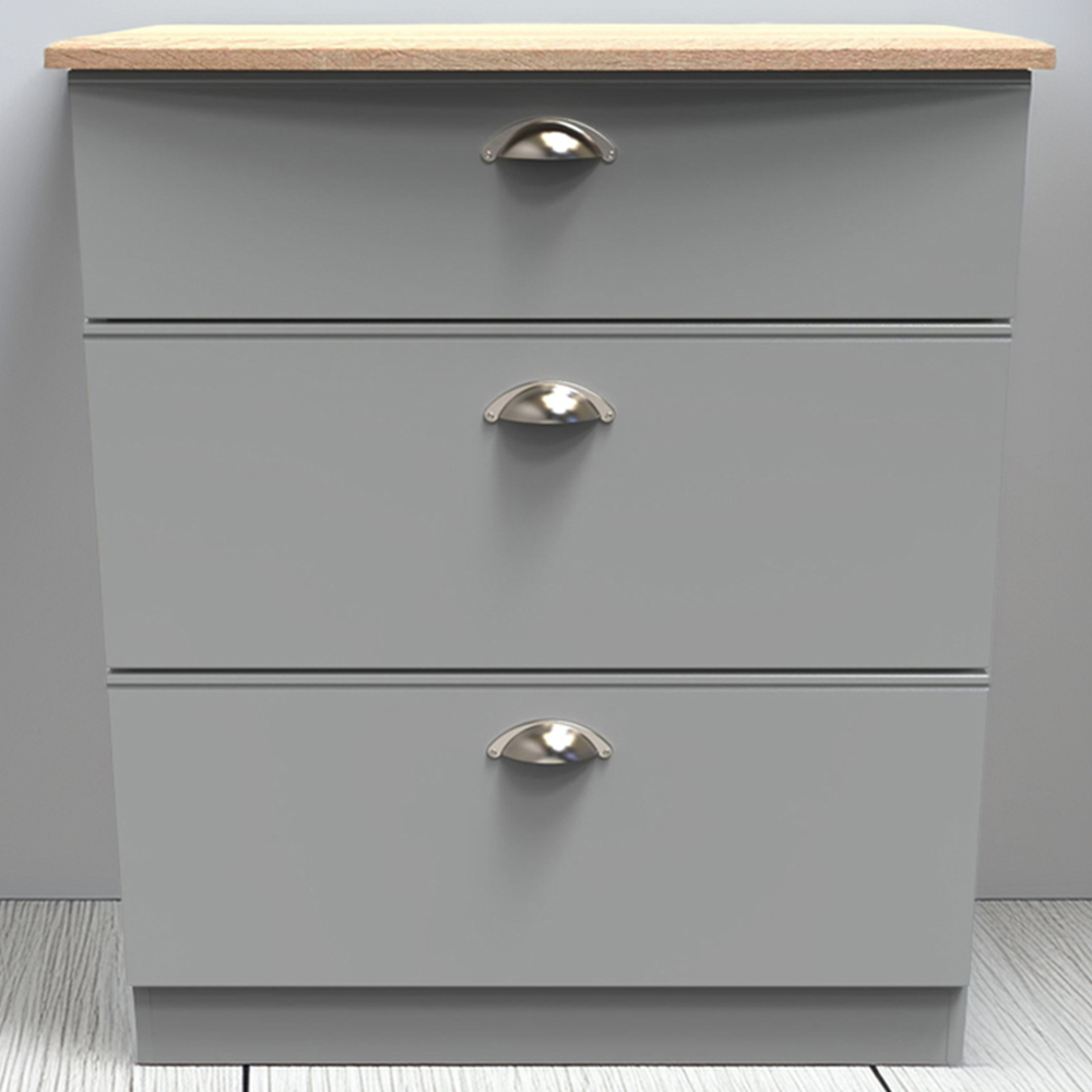 Crowndale Victoria Dusk Grey and Oak 3 Drawer Deep Chest of Drawers