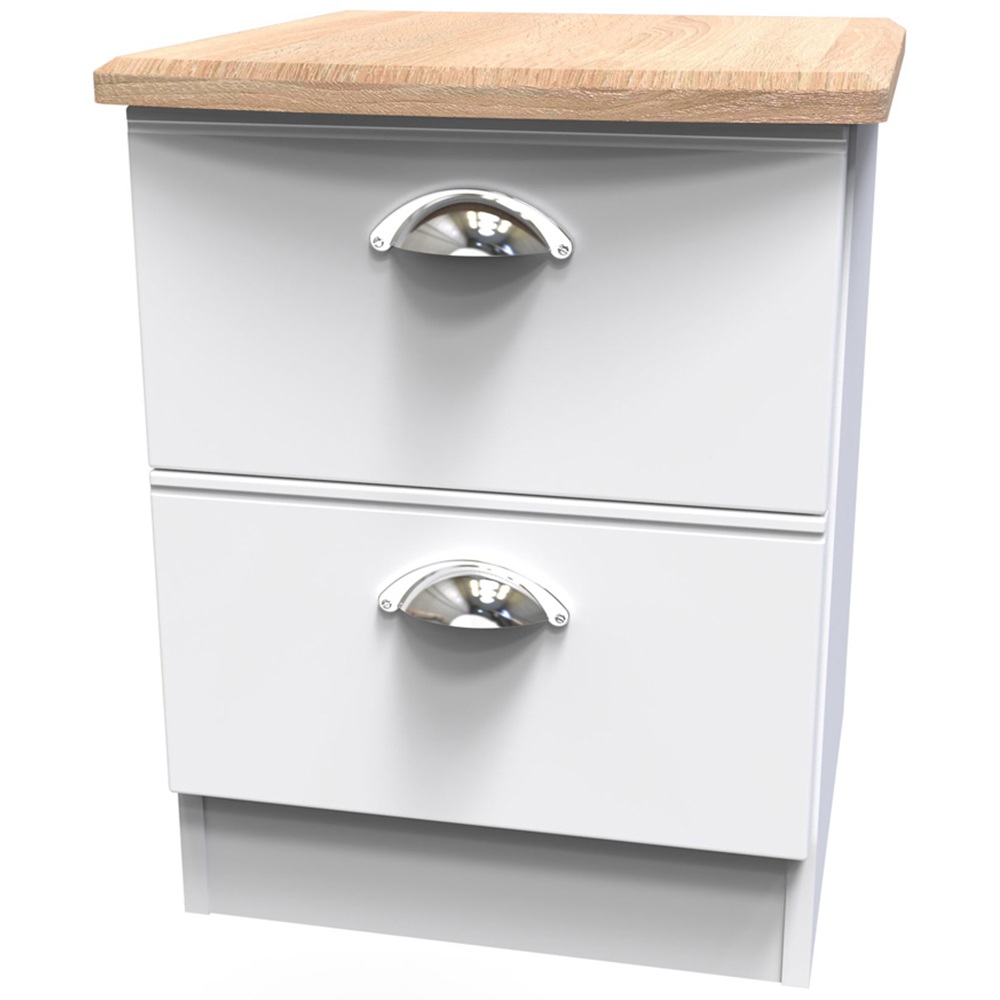 Crowndale Victoria White Ash and Oak 2 Drawer Compact Bedside Cabinet