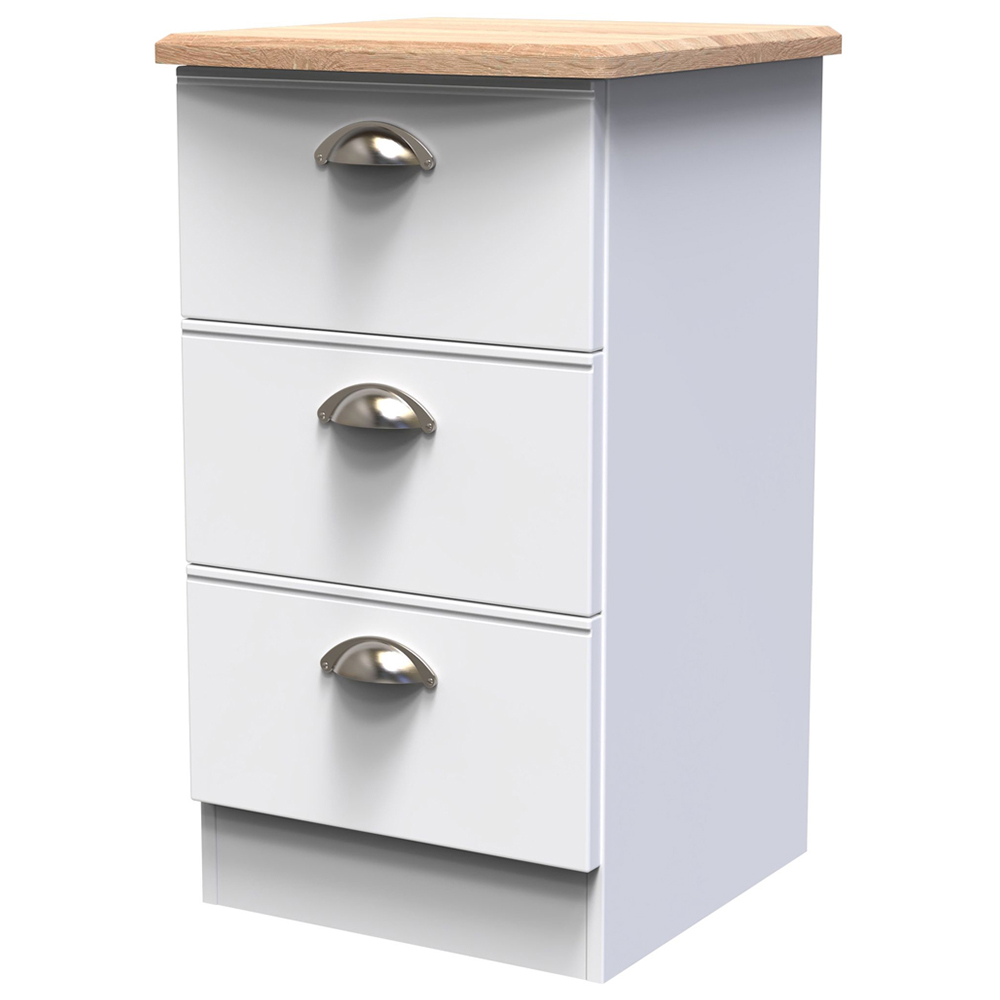 Crowndale Victoria White Ash and Oak 3 Drawer Bedside Cabinet