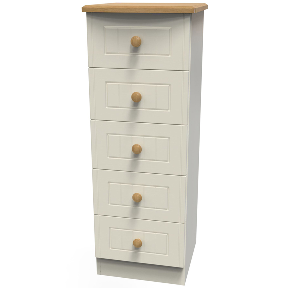 Crowndale Warwick Cream Ash and Oak 5 Drawer Tall Bedside Cabinet