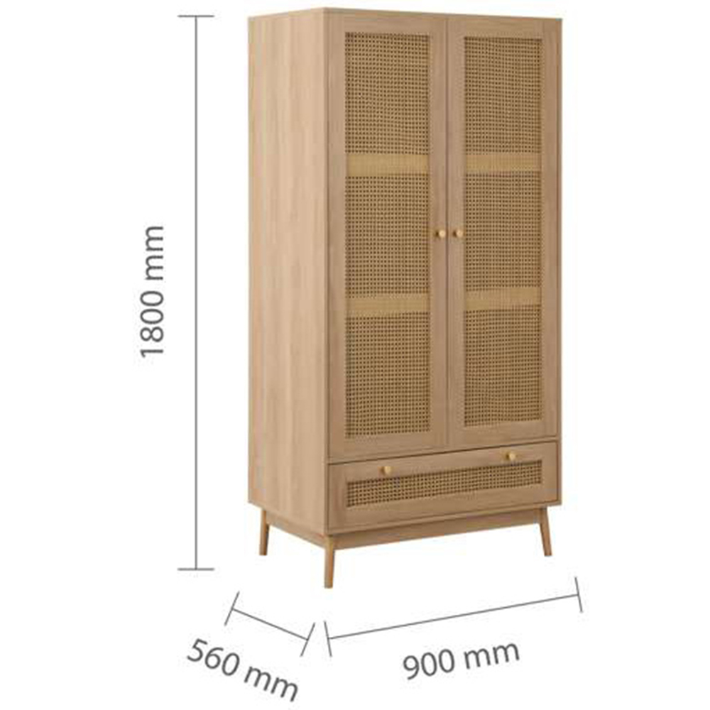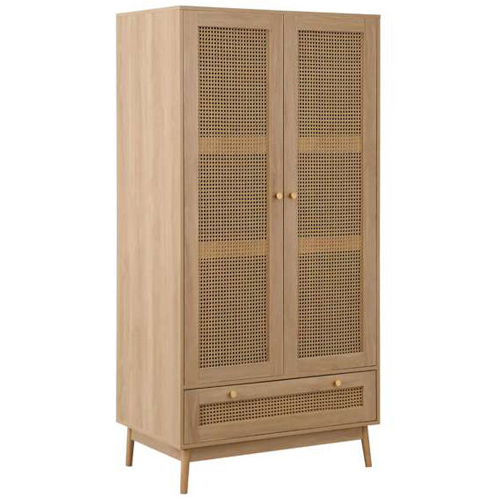Croxley 2 Door Single Drawer Oak Rattan Wardrobe