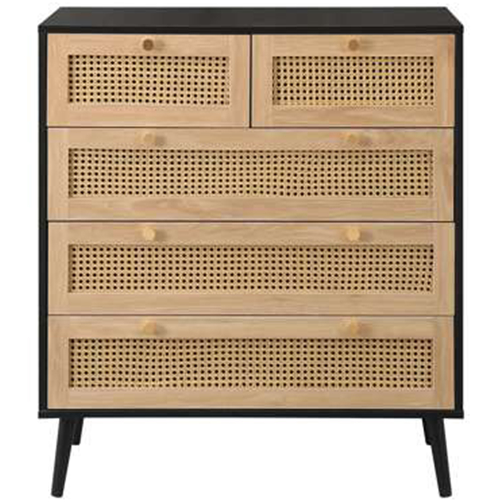 Croxley 5 Drawer Black and Oak Rattan Chest of Drawers