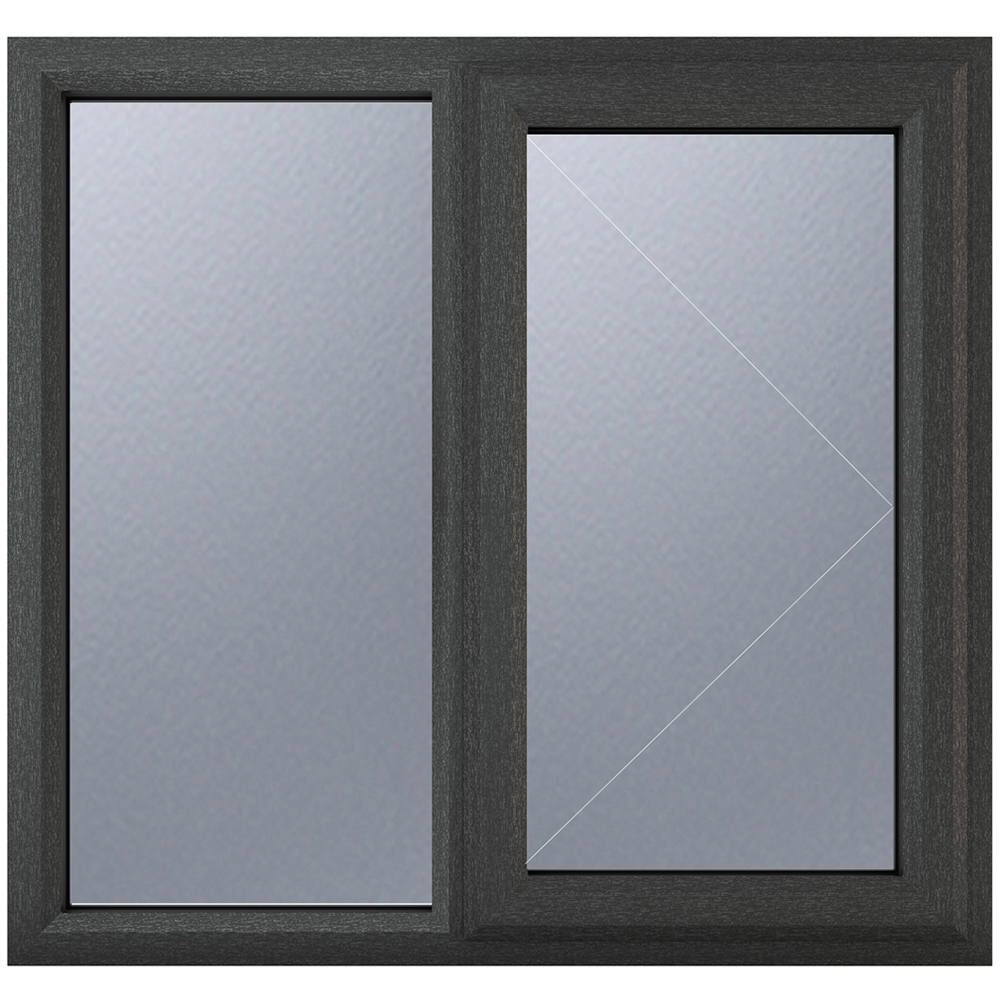 Enhance your home's aesthetic with this sophisticated grey and white uPVC window. Designed for a right-hand, side-hung configuration next to a fixed pane, this double-glazed unit offers superior energy efficiency with a high-energy efficient glazing unit. The obscure glass maintains privacy while allowing natural light. Security is ensured with an espag locking mechanism, and trickle ventilation is incorporated. The complete unit, including the PVC sill, measures 1190mm x 965mm, providing a perfect blend of style and functionality. Glazing packers are included.