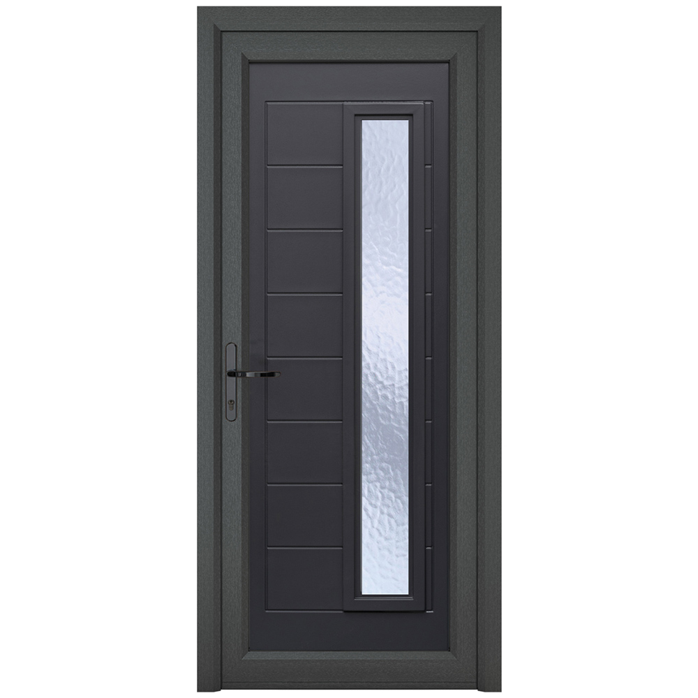 Crystal uPVC Front Door 1 Long Glass Monaco Grey White Right Hand Obscure Glass 920x2090mm