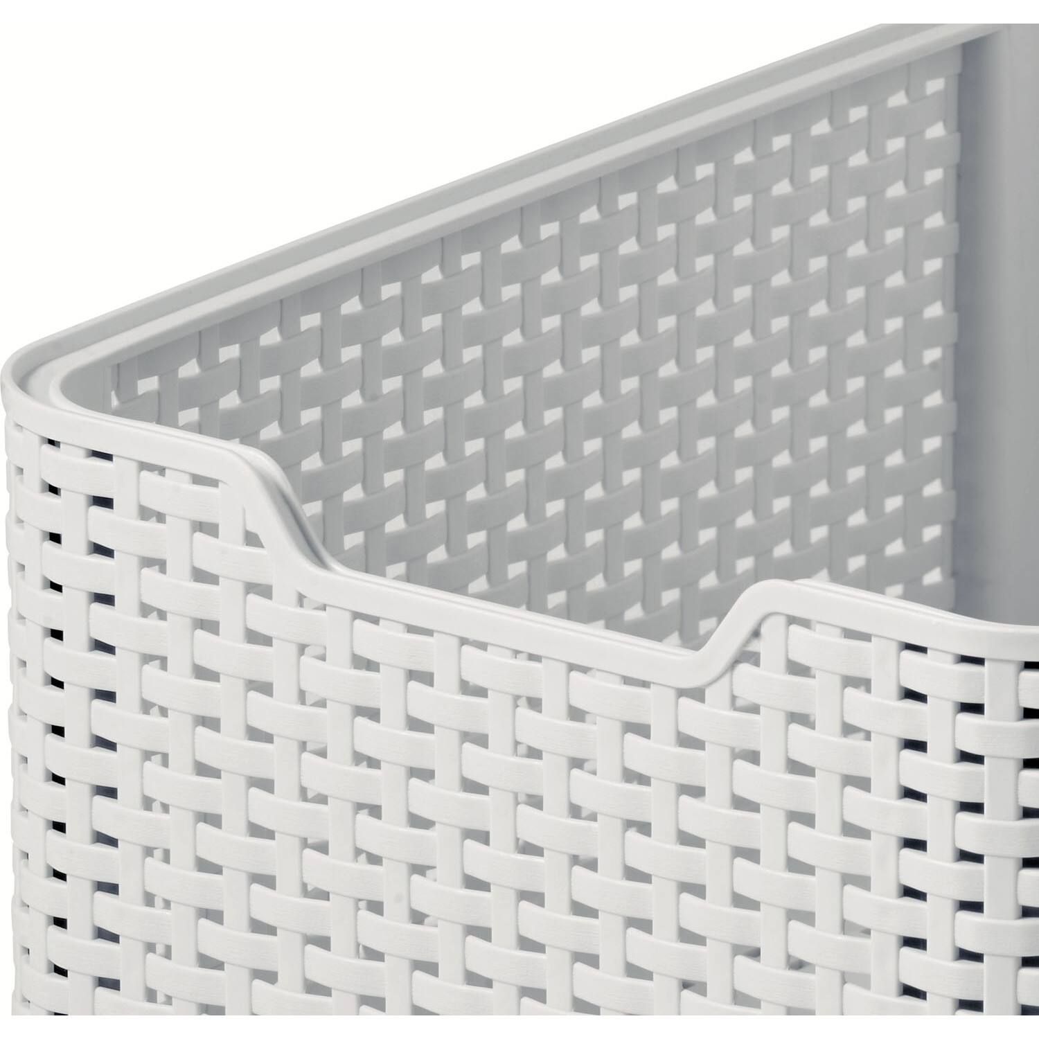 Bring rustic charm and practical storage together with this Curver Vintage Rattan Box. Its attractive rattan-effect finish, crafted from durable, hard-wearing plastic, adds character to any room without the worry of mould, snags, or unpleasant odours. This versatile basket is perfect for storing DVDs, CDs, magazines, or miscellaneous items. Keep your belongings neat and tidy.