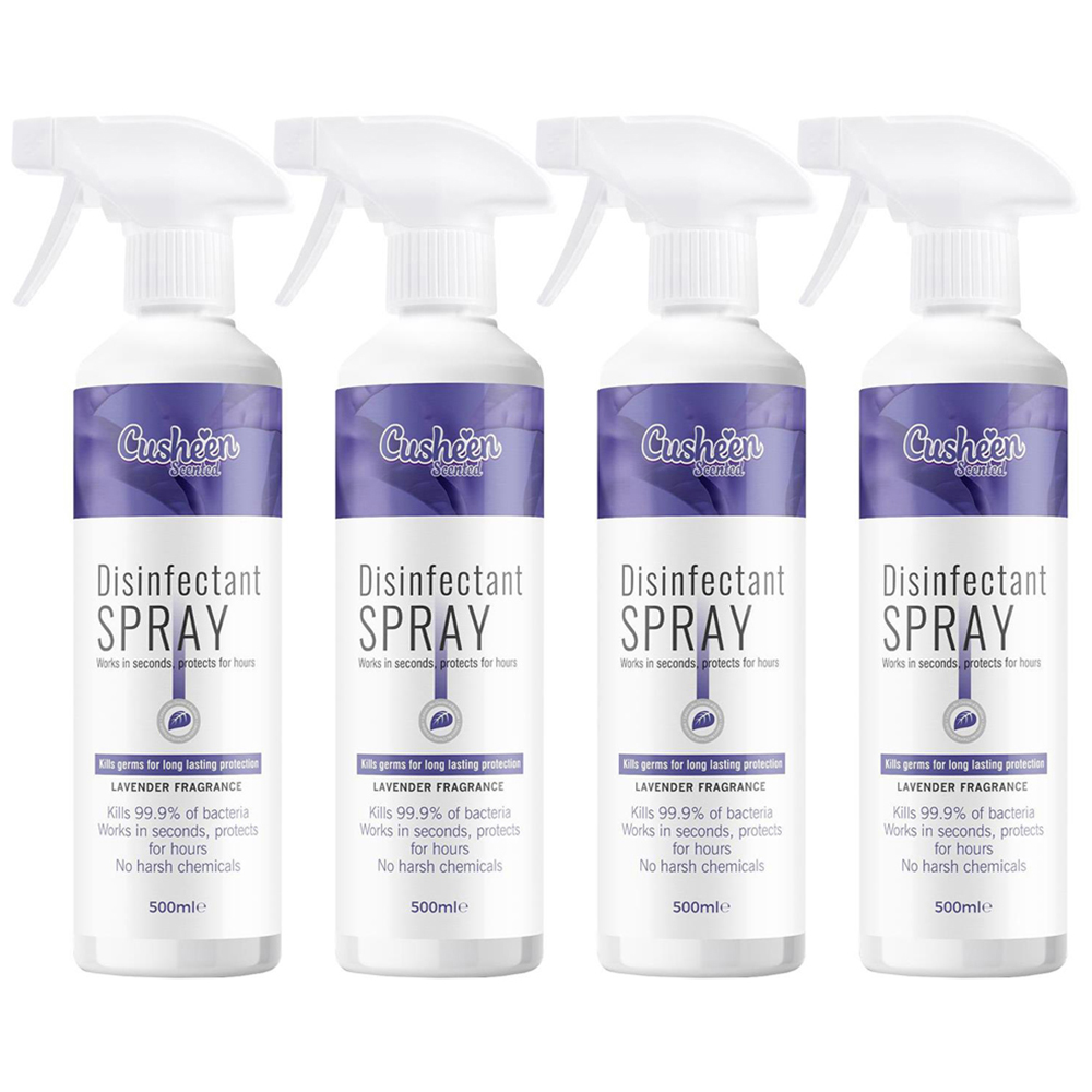 Introducing the 4 Pack of Cusheen Lavender Scented Disinfectant Spray, each 500ml bottle expertly crafted to refresh and sanitise your surroundings. Infused with a harmonious blend of natural essential oils, this spray acts as a powerful odour eliminator, forming a protective layer on the water’s surface to ensure a clean, pleasant environment.