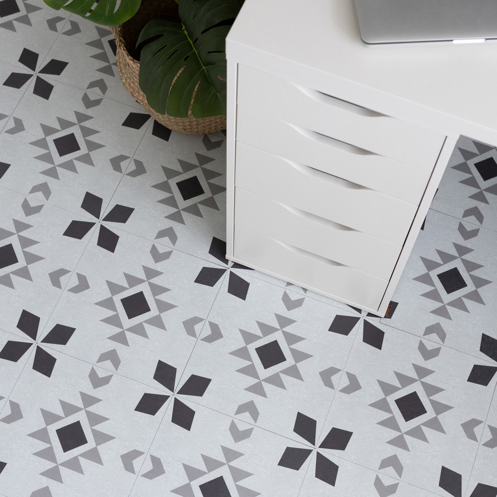 Transform your floors effortlessly with d-c-fix Ethno Sticky Back Vinyl Floor Tiles. These self-adhesive rigid vinyl tiles offer a cost-effective and quick solution to updating any room. Perfect for laying directly over clean, flat surfaces like existing tiles or wooden floors, they require no special tools or professional installation. Simply peel and stick, butt-joining the tiles for a seamless finish – no grouting needed! Easily cut to size with a utility knife. Their durable, water-resistant surface ensures easy cleaning. Suitable for use over hard, flat surfaces, not suitable for use over lino or floating floors (like laminate). A hardboard underlayment can be used to create a suitable surface if necessary. Each tile measures 30.48 x 30.48cm. Pack contains 33 tiles, covering 3 square meters.