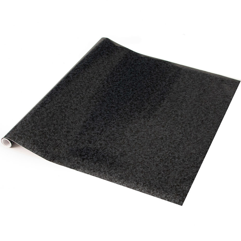 Transform your kitchen or furniture with this peel-and-stick vinyl film, boasting a stylish black granite effect. This high-quality, German-engineered film offers a budget-friendly way to revitalize worn surfaces like kitchen doors and worktops. Its self-adhesive backing ensures easy application, with the added benefit of repositionability for error-free installation. Perfect for renters, the film is removable and boasts a durable, wipe-clean finish for simple maintenance. Heat resistant to 70°C, it's practical and stylish. For optimal results, use mats for hot pans and food preparation, and seal around wet areas with silicone. Size: 67.5cm x 5m.