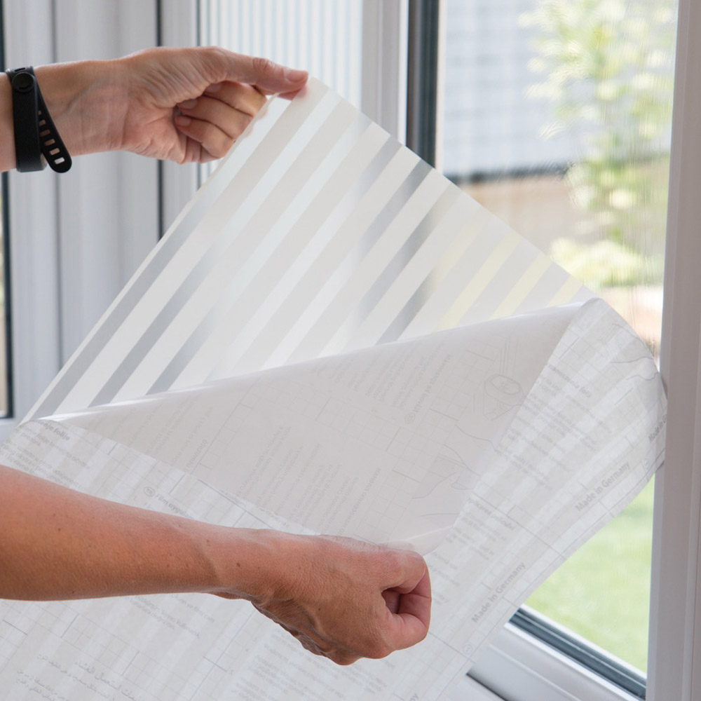 Transform your windows with d-c-fix Linia Static Cling Vinyl Window Film. This striped film offers privacy and decoration without compromising natural light, perfect for windows, glass doors, and even shower screens. Application is straightforward: clean the glass surface, measure, spray with water, peel the backing, and smooth into place. Remember a 2mm gap around edges for optimal adhesion (it needs 100% contact with the glass to fully adhere). Use a squeegee to remove excess water, wipe clean, and let dry for 24 hours. Beyond aesthetics, Linia provides 95% UV protection, safeguarding your furnishings from fading. Cleaning is a breeze with a damp cloth and non-abrasive cleaner. Best of all, removal is residue-free, making it ideal for renters. Proper storage allows for reuse. Size: 90cm x 1.5m.
