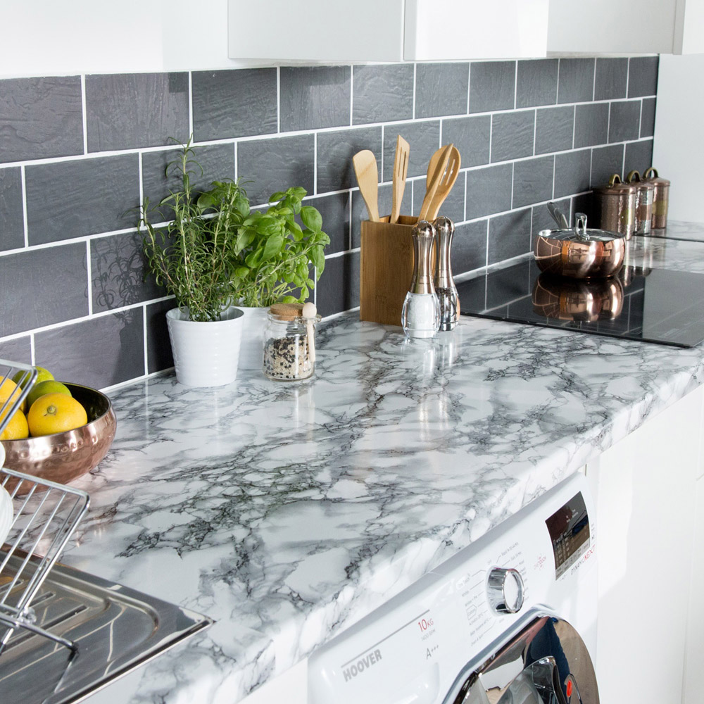 Transform your home surfaces with d-c-fix Marble White Sticky Back Plastic Vinyl Wrap Film. This peel-and-stick vinyl film offers an authentic marble effect, perfect for a stylish and functional update. Ideal for DIY projects, it effortlessly covers kitchen doors, worktops, and furniture, providing a budget-friendly makeover. Its high-quality German-manufactured film ensures easy application, the self-adhesive film is repositionable, allowing for error correction. For renters, its removable design is a major plus. With heat resistance up to 70°C and a durable wipe-clean surface, maintenance is a breeze. Note: Always use mats for hot pans and food preparation and seal around wet areas with silicone. Size: 67.5cm x 15m.