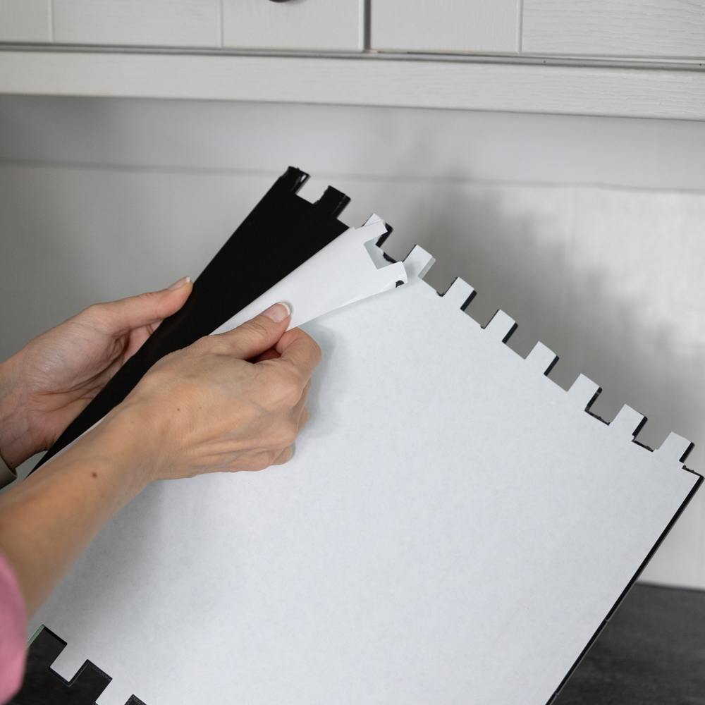 Revitalise your kitchen or bathroom splashback effortlessly with dc-fix premium composite wall tiles. Transform dull surfaces in minutes – no messy grout, expensive tilers, or specialist tools needed! Simply clean the surface, peel, spray with water, and stick. Perfect for flat tiles or painted walls. Cutting’s a breeze: score with a utility knife and snap. These interlocking tiles create a seamless finish. The durable, water-resistant surface wipes clean with a damp cloth and detergent.