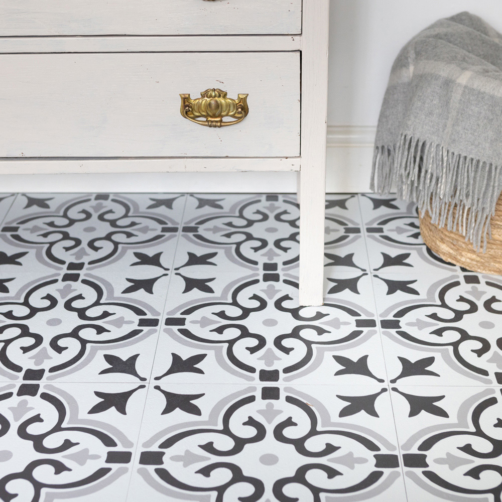 d-c-fix Stencil Motif Grey Sticky Back Vinyl Floor Tile 33 Pack