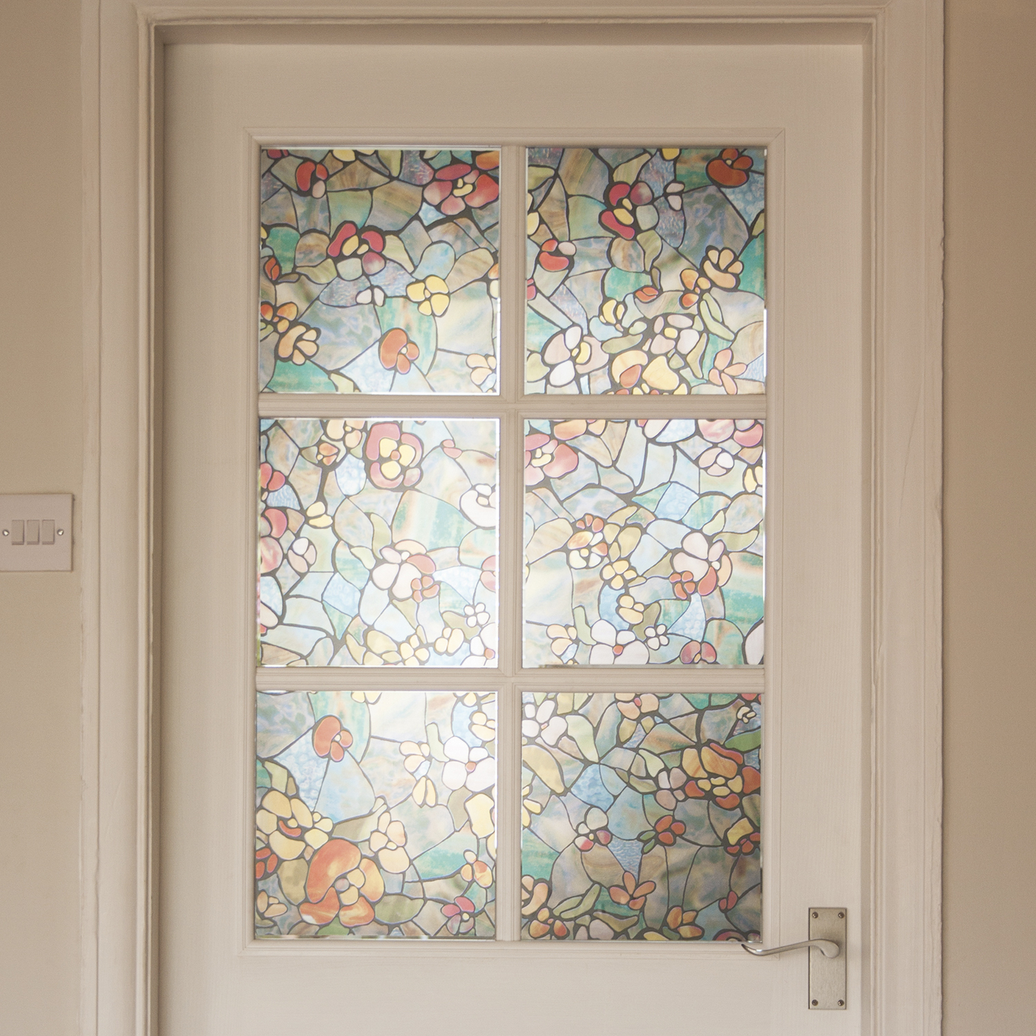 This d-c-fix Venetian Garden Self-Adhesive Stained Glass Window Film is ideal for covering many surfaces in the home and office. Perfect for kitchen makeovers, furniture updates and arts and crafts, this peel-and-stick film is easy to apply, wipe clean, durable and heat resistant to 75 degrees C. The colourful stained glass window design is perfect for a front door or bathroom window. As light shines through the glass, watch the pretty coloured shadows reflect onto the floor. Its artistic floral design is welcoming and homely, and its self-adhesive feature makes it easy to use and can be placed almost anywhere in the home.