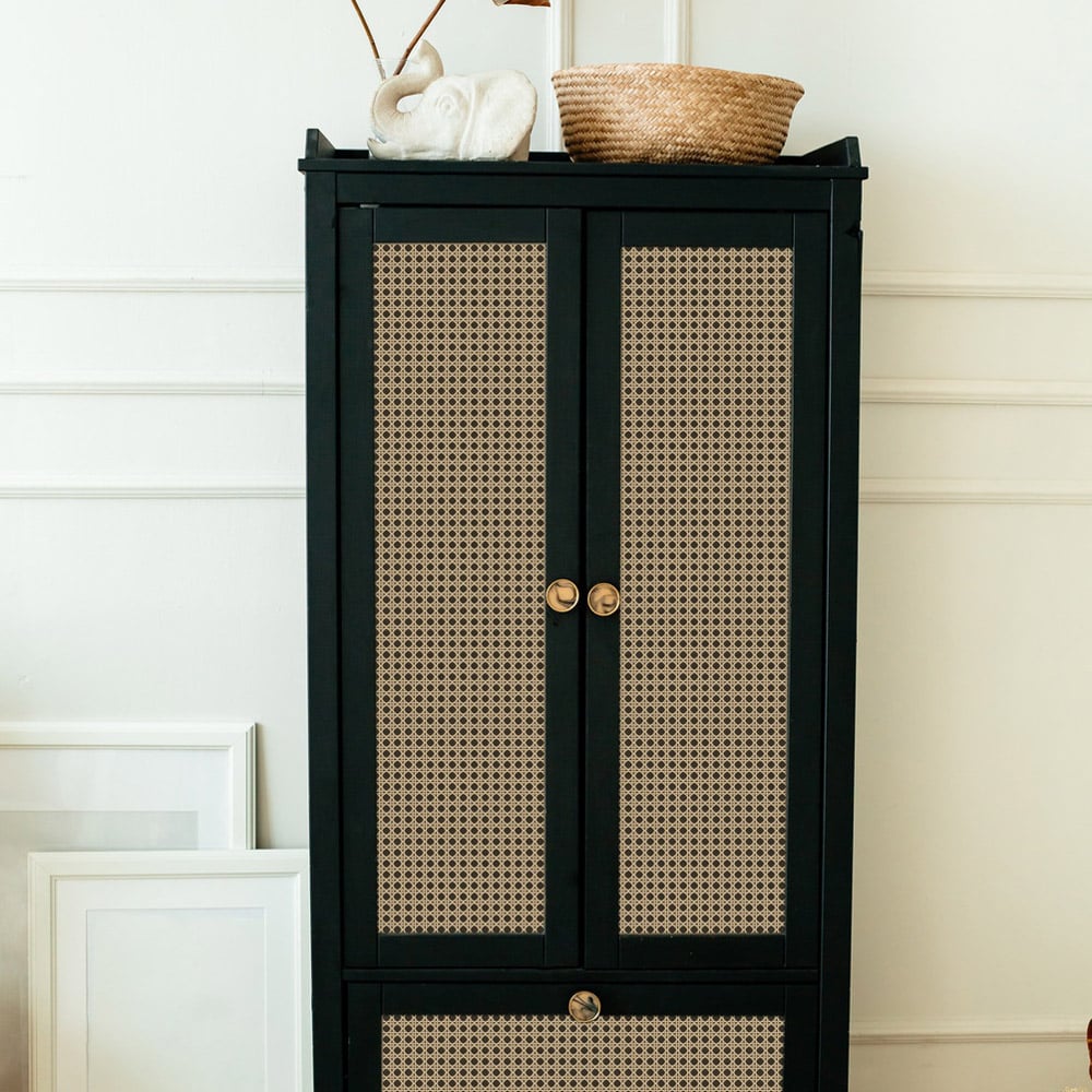 Give your home a stylish update with this Woven Cane Sticky Back Plastic Vinyl Wrap Film. Perfect for upcycling furniture and other surfaces, this peel-and-stick film offers a trendy natural cane effect. Easily transform kitchen doors, interior doors, desktops, coffee tables, dressing tables, chests of drawers, and shelves. Made in Germany, this high-quality, self-adhesive film is repositionable for easy application. A removable and renter-friendly alternative to paint, it's heat-resistant to 70°C and boasts a durable, wipe-clean finish. Size: 67.5cm x 15m.