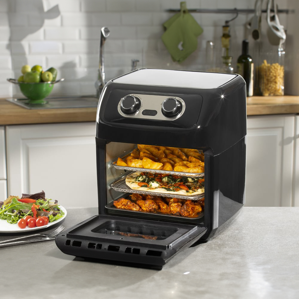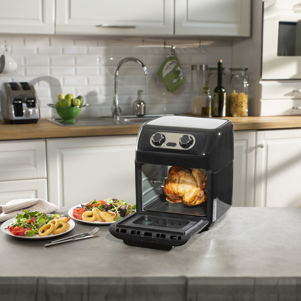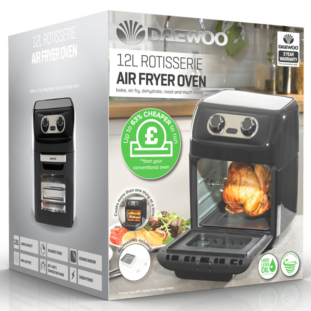 This Daewoo Rotisserie Air Fryer Oven is a stylish and versatile addition to any kitchen, boasting a generous 12L capacity. Unlike your typical fryer, this clever oven uses no oil or fats, so you can cook up healthier, larger meals with ease. Fancy roasting a chicken? The rotisserie function and spit attachment have you covered, delivering perfectly roasted results every time. Plus, there's a special attachment included for lamb and donner kebabs.