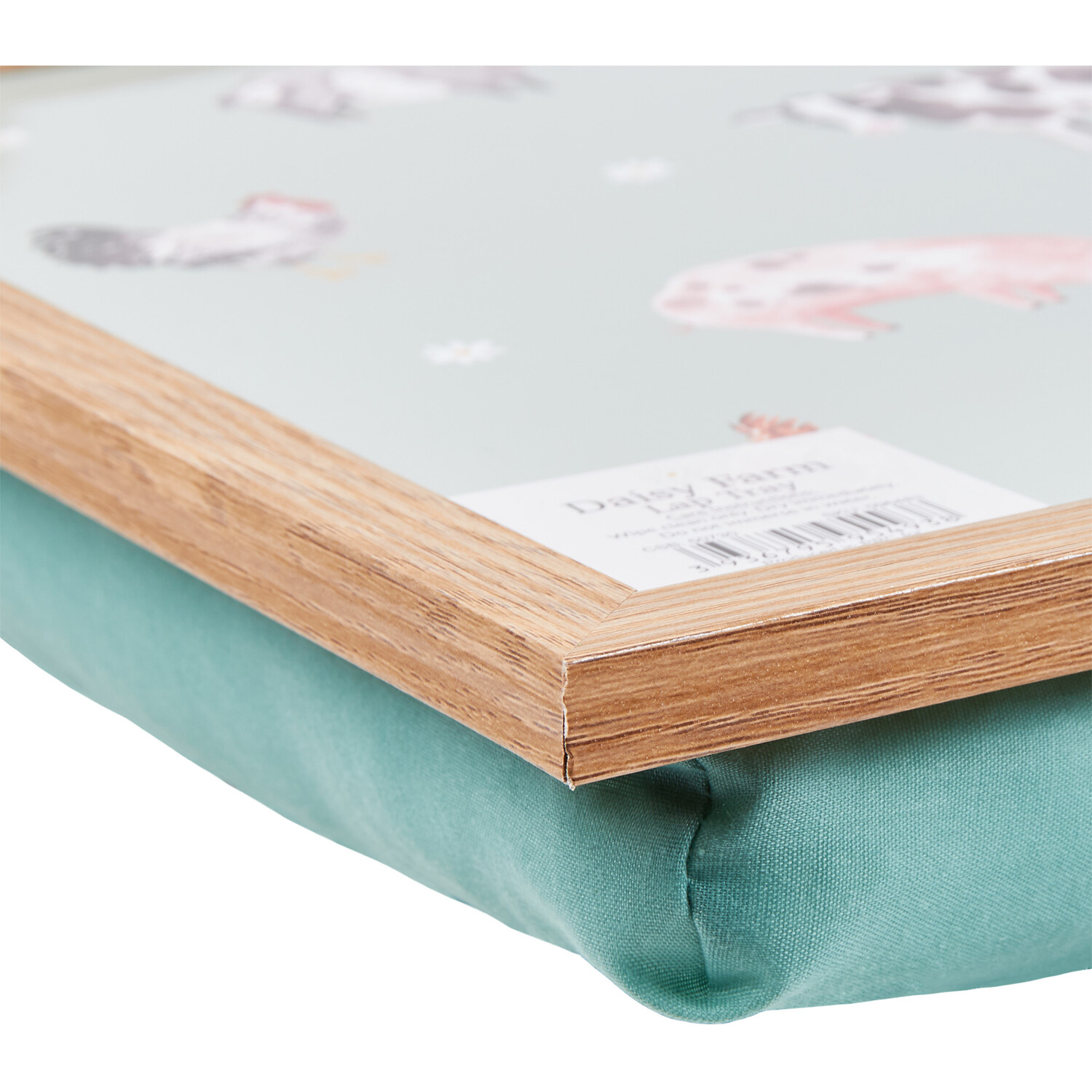 This Daisy Farm Lap Tray makes casual dining a breeze. The cushioned base ensures comfort, allowing you to use it anywhere with ease. Featuring a charming farmyard design with cows, pigs, hens, sheep, and goats set against a blue backdrop, it's both stylish and adorable. Versatile and lightweight, this lap tray is perfect for breakfast in bed, movie nights, or even tackling homework. Its portability makes it easy to move around the house as needed.