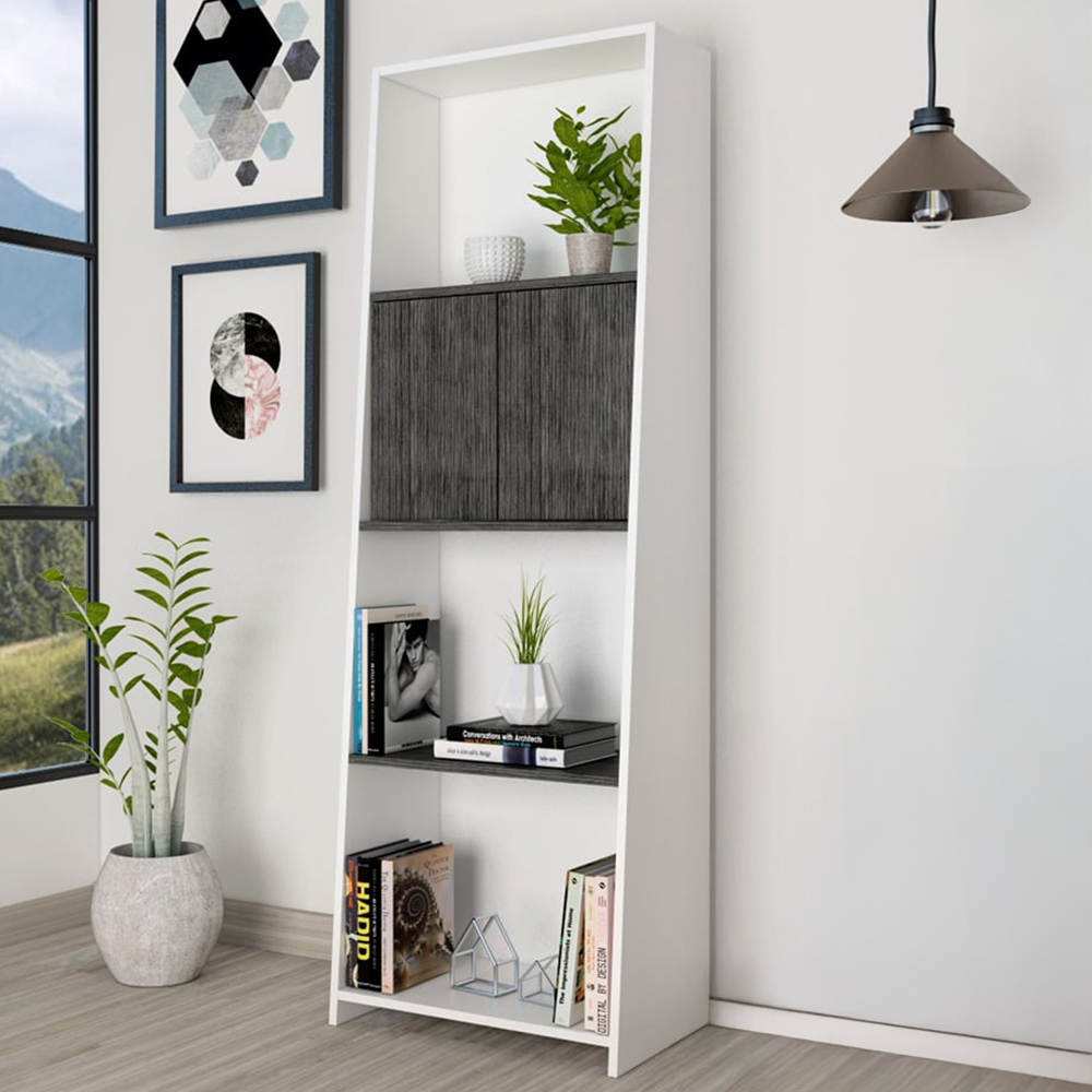 Dallas 2 Door 4 Shelf White and Carbon Grey Bookcase