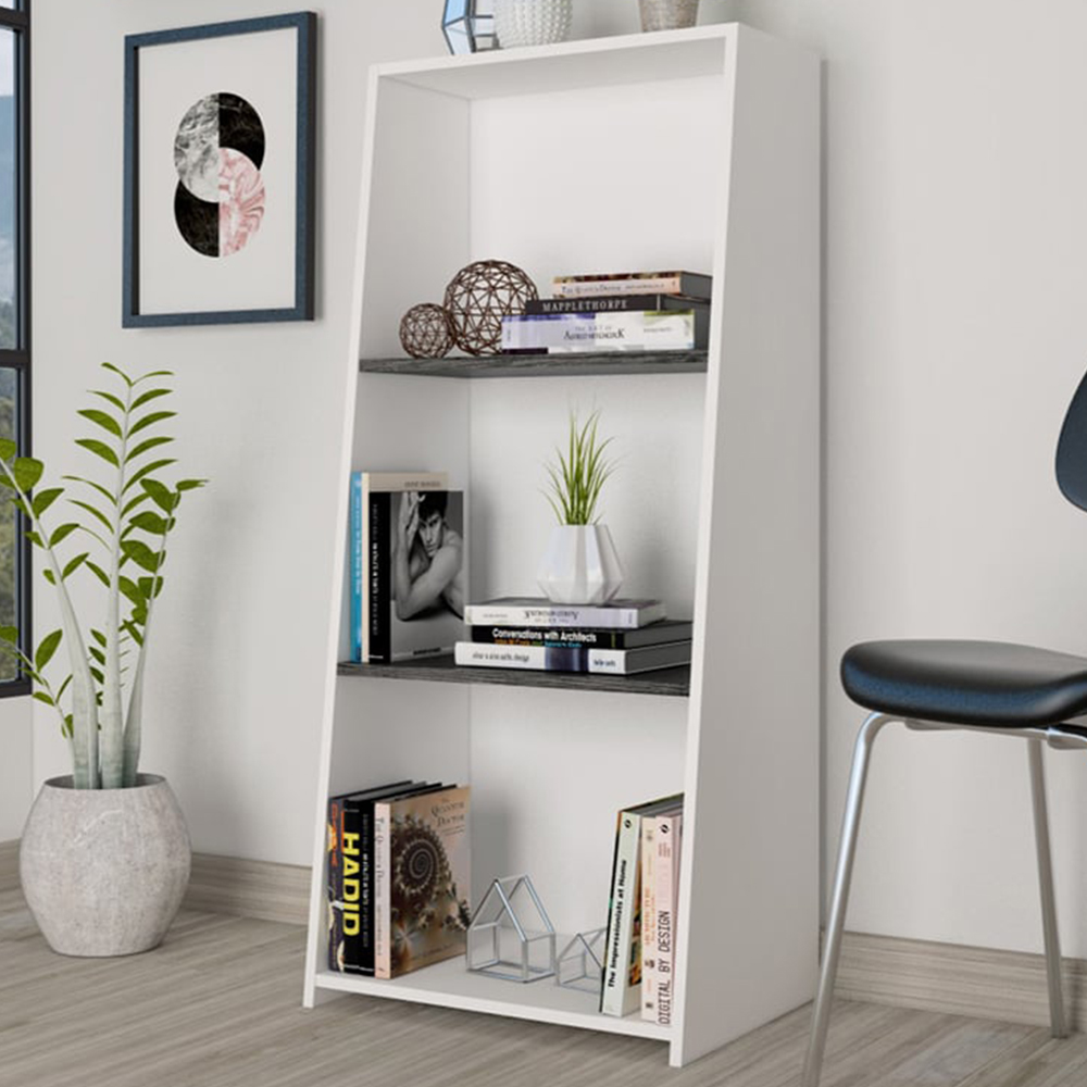 This stylish Dallas bookcase, in white and carbon grey, offers a neat graduated design with three shelves of varying sizes for different storage needs. Perfect as a standalone piece or combined with additional units for a longer run in your home office. Its durable, easy-to-clean melamine finish in a white and carbon grey oak effect ensures lasting quality.