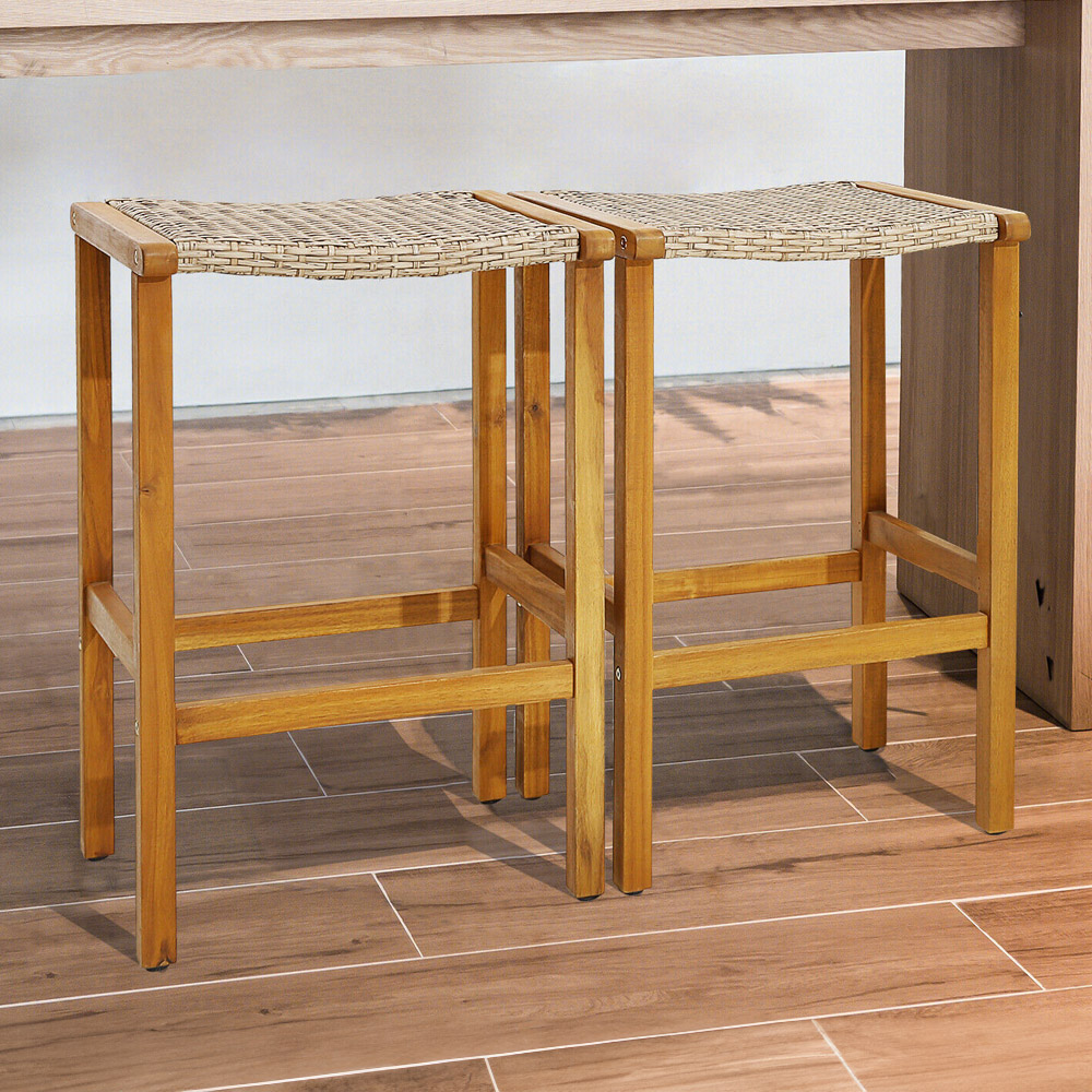 Costway Acacia Wood PE Wicker Bar Stool Set of 2