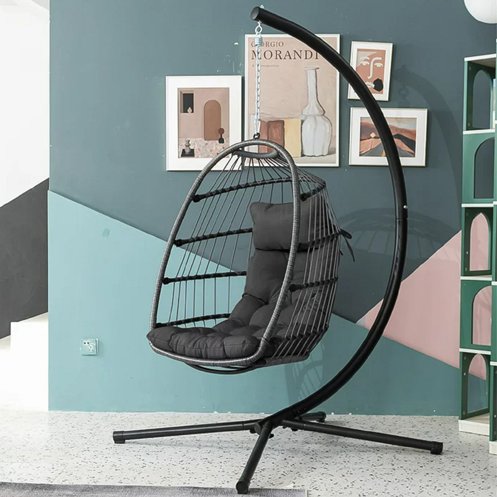 Furniture One Yellow Rattan Egg Teardrop Cuddle Chair