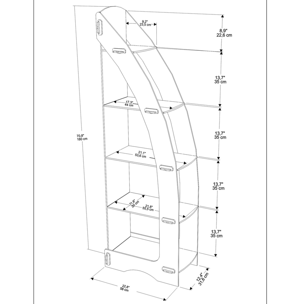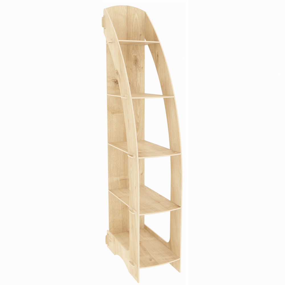This Orsa corner bookshelf boasts a distinctive design, offering a stylish storage solution for books, magazines, and personal items. Ideal for any corner of your home, it provides a contemporary touch to both home and office spaces. Enhance its appeal by displaying plants, decorative accessories, or vases. Built with convenience in mind, it features a screwless design for easy assembly. Constructed from 8mm thick, high-quality MDF and manufactured with eco-friendly, TSE-certified materials, this bookshelf arrives flat-packed with assembly instructions included. Numbered parts ensure a quick and straightforward set-up.