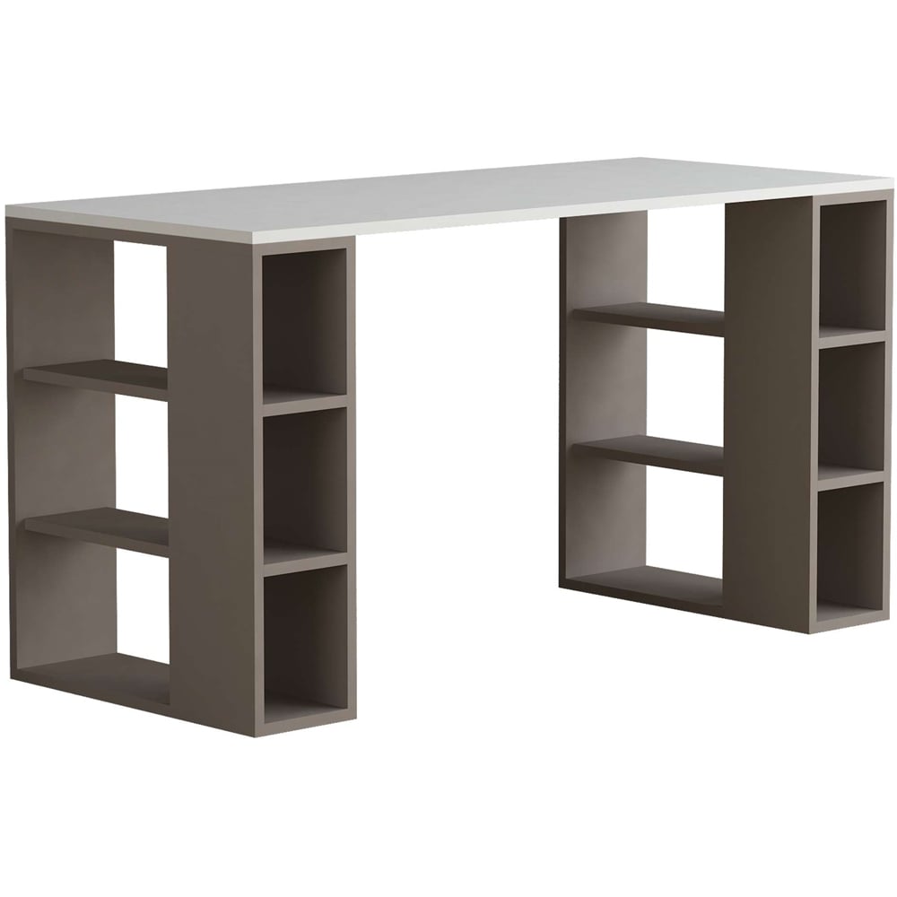 Decortie Colmar White and Mocha Grey 6 Shelf Desk
