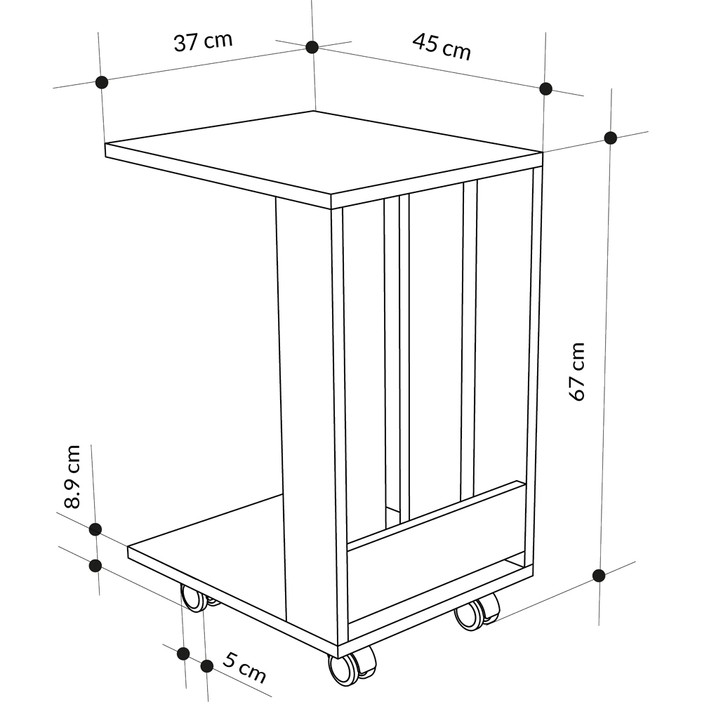 The Decortie Edi White C Sofa Table: A stylish and practical addition to your living space. This compact table features an open compartment, perfect for magazines, and four wheels for easy mobility. Ideal as a side table or standalone piece, its dimensions are H60 x W37 x D45cm. Backed by a comprehensive 2-year warranty.