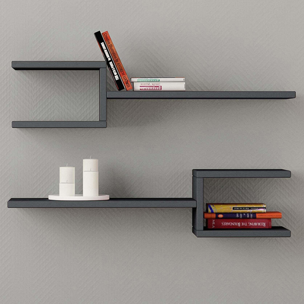 Decortie Fork Anthracite Wall Mounted Floating Shelf Set