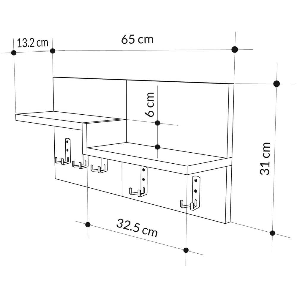 Upgrade your entryway or bedroom with the Harmon Wall Mounted Hanger. This stylish and functional piece boasts a sleek, modern geometric design crafted from high-quality 18mm engineered wood. Five rustproof black metal hooks provide ample hanging space for coats, bags, and accessories, while a convenient open shelf offers versatile storage for décor or everyday essentials. Measuring 65 x 15 x 31cm, it’s compact yet spacious. Easy assembly and a two-year warranty ensure a worry-free experience. A contemporary look that complements any décor.