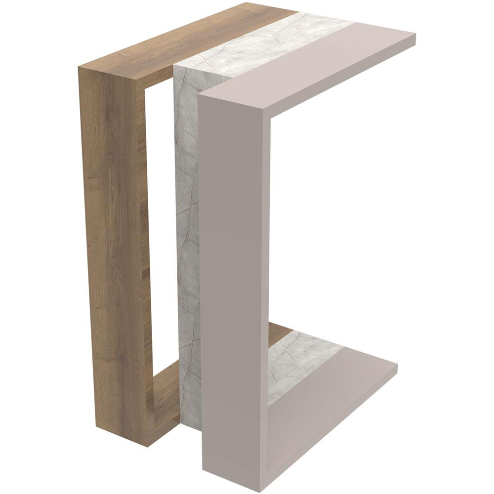 Decortie Muju Mocha Grey Oak and Gold Marble Effect Modern C Shaped Side Table