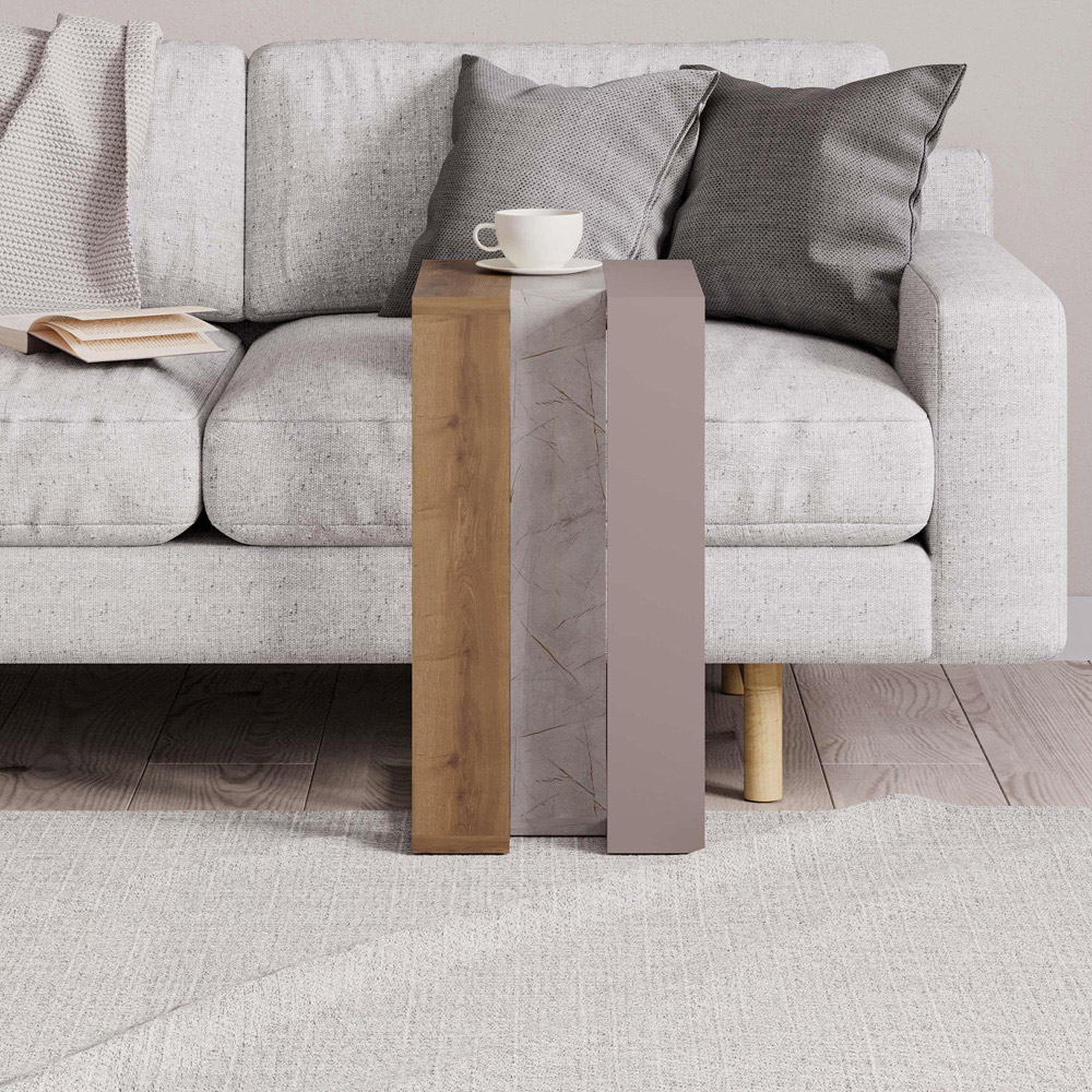 Elevate your living space with the Muju Mocha Grey Oak and Gold Marble Effect C-shaped side table. Its unique C-shape design adds a touch of modern elegance and is perfect for smaller rooms where space is at a premium. This versatile piece functions equally well as a side table, coffee table, or display surface. The luxurious mocha grey finish complements a wide range of décor styles, making it a practical and stylish addition to any room.