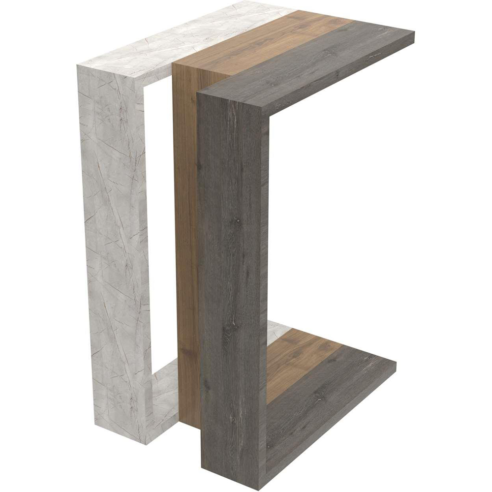Decortie Muju Oak and Dark Coffee Gold Marble Effect C Shape Side Table