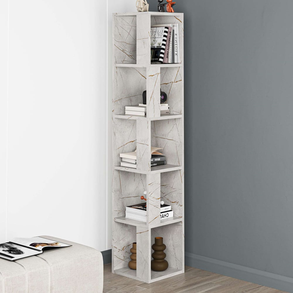 Decortie Piano Gold Marble Effect 5 Shelf Corner Bookcase