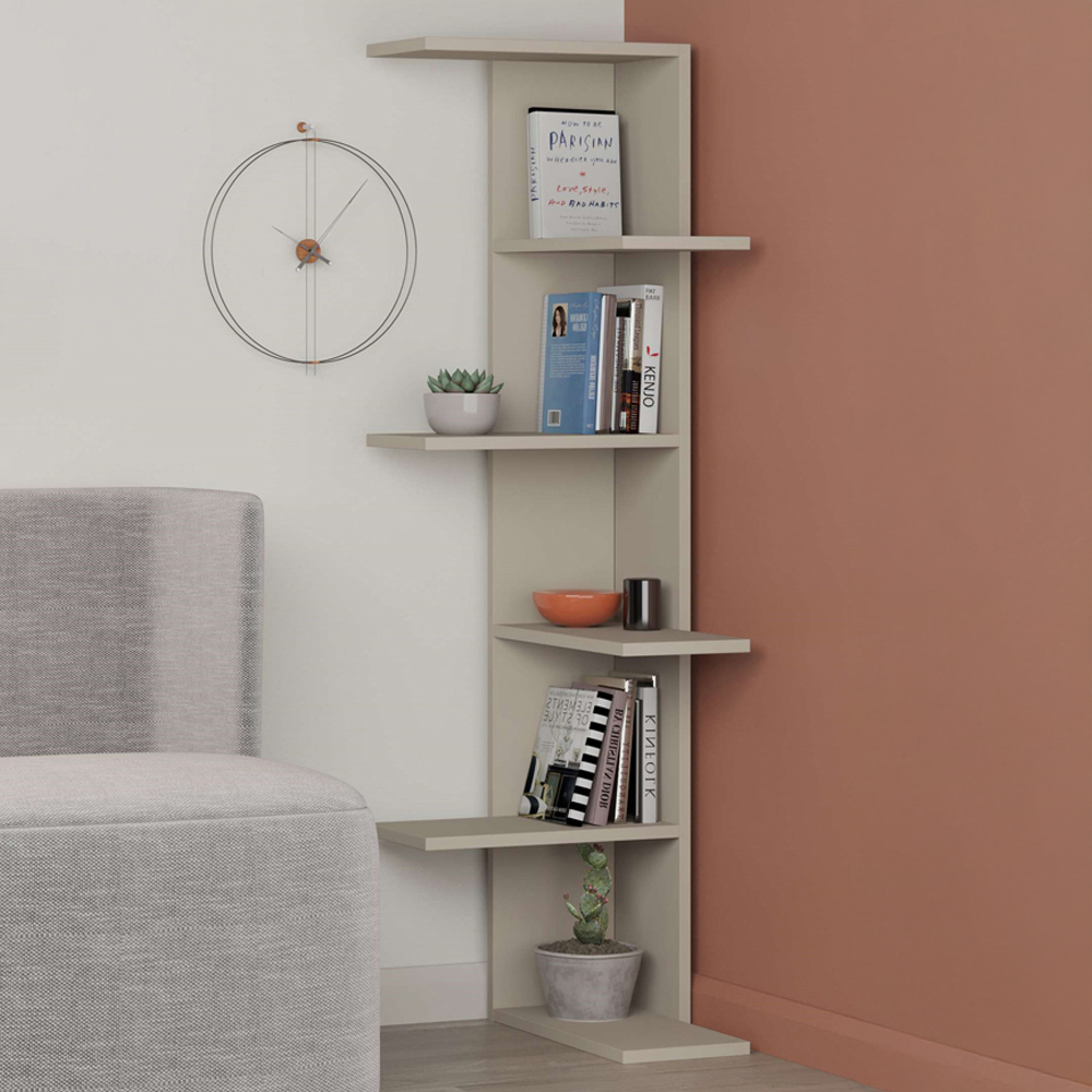Introducing our space-saving freestanding corner bookcase. With 5 tiers, it offers ample storage. Measuring 37 x 37 x 141 cm, it fits any room. Its modern look elevates your space, organizing beyond books.