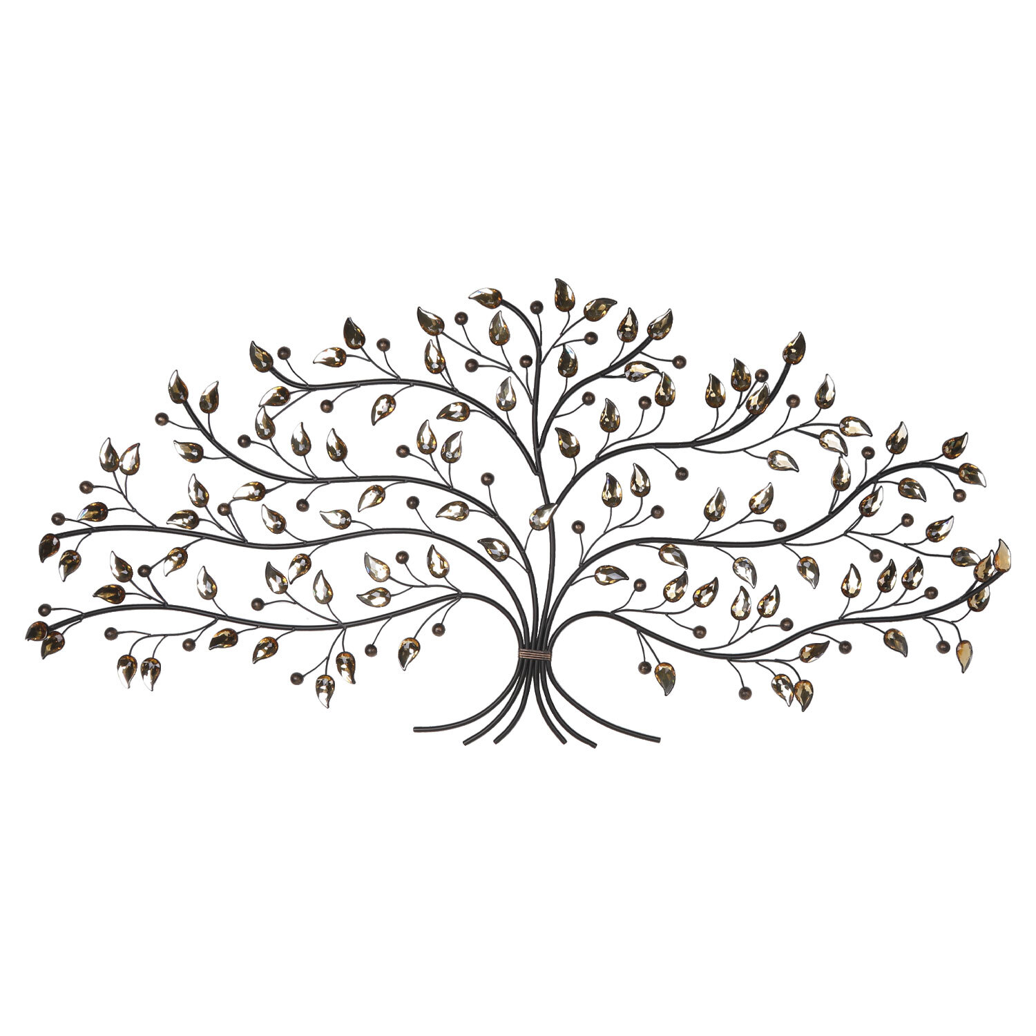 Elevate your home's style with this exquisite metal tree wall art. Inspired by broad, elegant trees, this expertly crafted metal tree is finished with acrylic gems for luxurious-looking leaves. Featuring plenty of natural twists and bends, its versatile appeal makes it ideal for bedrooms, living rooms, or hallways—adding a touch of elegance and beautifully marrying natural and industrial design trends. A statement piece that commands attention without overwhelming the space.