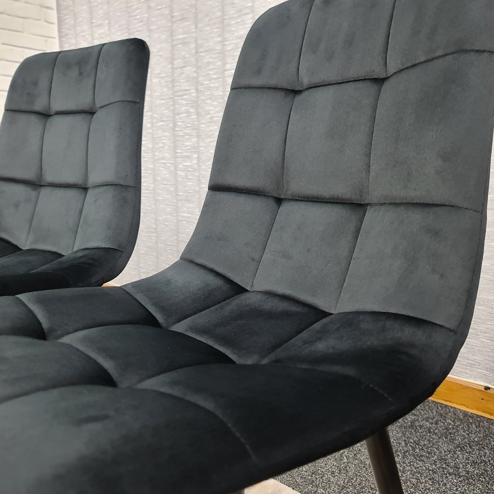 Introduce a touch of opulence to your dining area with the Denver Black Velvet Dining Chair Set. This sophisticated ensemble of six chairs makes a superb enhancement to any dining room or kitchen. Each chair features a timeless curved back design, sumptuously finished in soft velvet, complemented by cushioned seats for superior comfort. Benefit from the firm backrests and robust legs, ensuring steadfast stability and support. Assembly is straightforward, requiring no extra tools for a hassle-free setup.