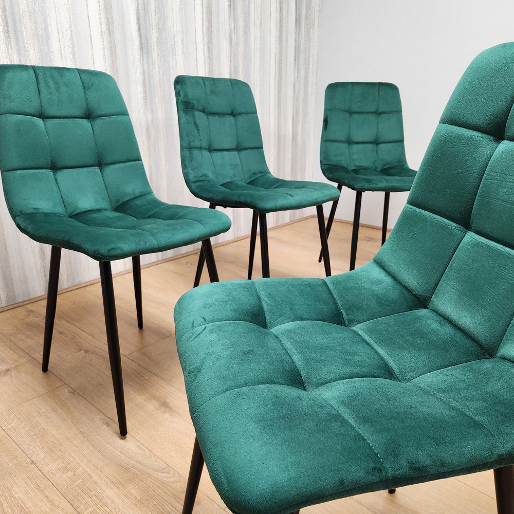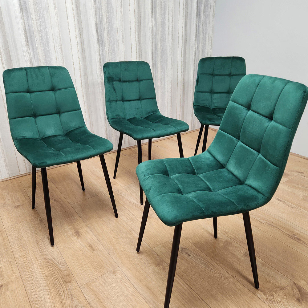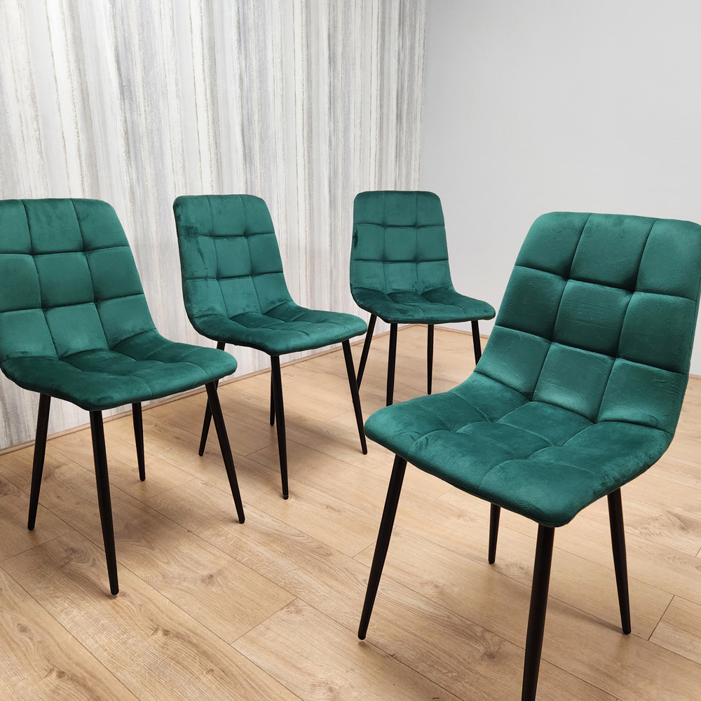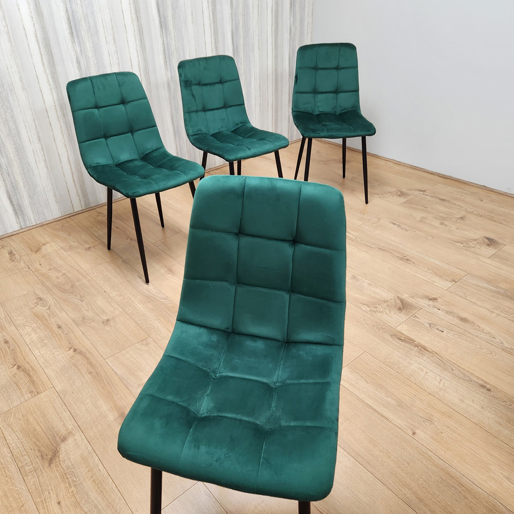 Elevate your dining area with the Denver dining chairs. This set of four chairs, upholstered in luxurious green velvet, adds a touch of sophisticated style to any kitchen or dining room. The classic curved back design and generously cushioned seats offer exceptional comfort, while the sturdy legs ensure lasting stability. Simple assembly is required, with no tools needed.
