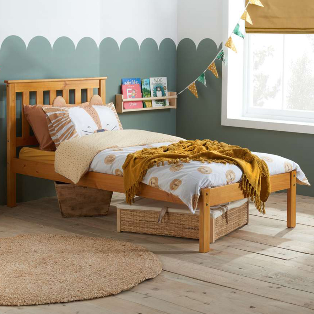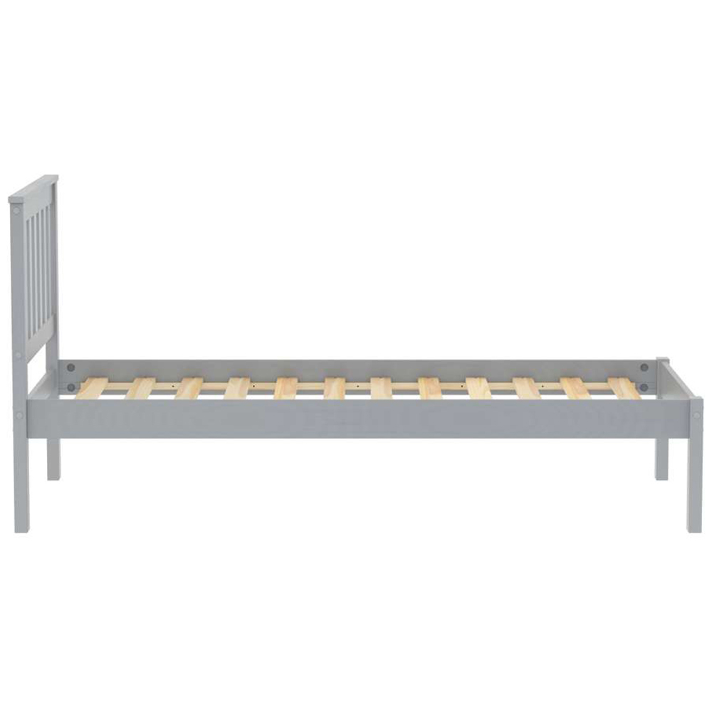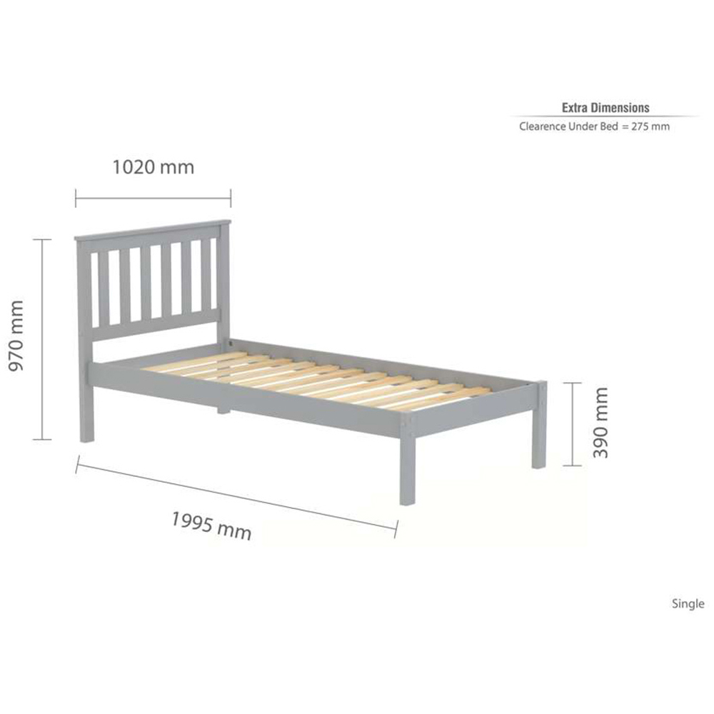 Give your child the perfect haven with the Denver Single Grey Wooden Bed. This charming bed, crafted in a traditional shaker style, offers a touch of heritage to any bedroom. Built from robust solid pine, it provides a sturdy and durable frame for years of restful sleep. The solid slatted base ensures firm mattress support and excellent airflow. Ideal for a child',s room, this single bed is designed to accommodate a UK standard-size mattress.