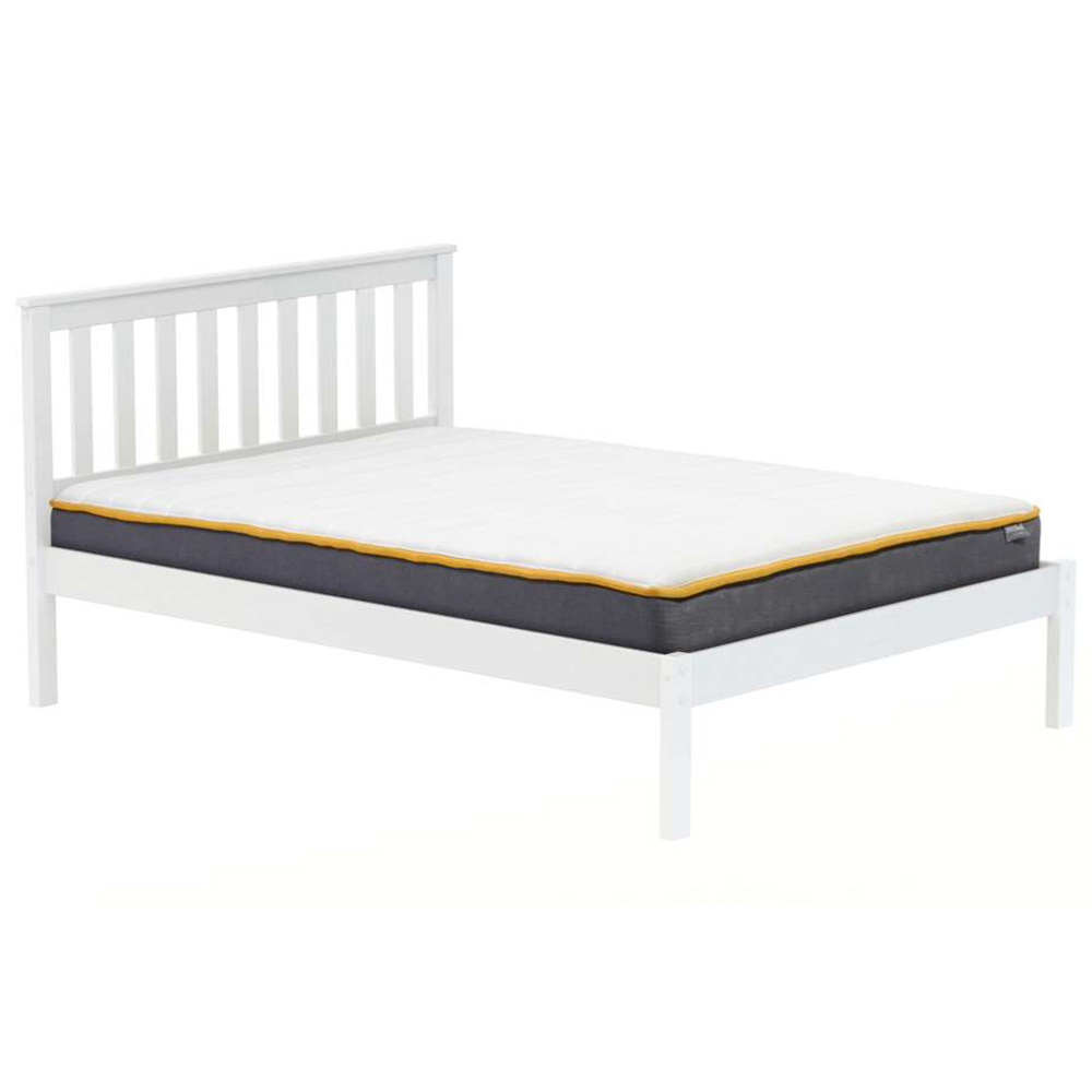The Denver small double white wooden bed, crafted from solid pine, offers a charming traditional shaker style. Its clean lines and sturdy construction ensure lasting durability and safe use. The solid slatted base provides firm mattress support and excellent airflow. Ideal for a child',s bedroom, this bed is designed to accommodate a UK standard-size mattress.