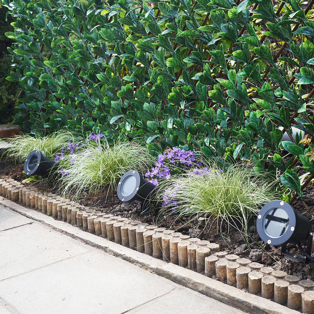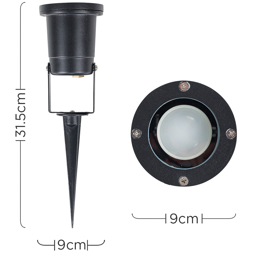 Brighten up your outdoor spaces with the ValueLights Derwent Black Outdoor Spike Lights Set of 4. These contemporary garden lights showcase a sleek black aluminium finish and are versatile enough to serve as either wall-mounted spotlights or ground spike lights. Perfect for illuminating flower beds, pathways, or seating areas, they create a warm and welcoming ambience for your outdoor settings. Each light in this complete set includes a five-watt warm white LED bulb, making it an excellent addition for enhancing your home's exterior charm with decorative lighting.