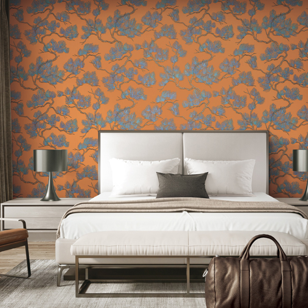 Transform your space with the Design ID Pine Tree wallpaper, a vibrant blend of orange and blue hues arranged in a delicate pine tree pattern. This eclectic design brings a touch of artistic nature to any room. Crafted from heavyweight vinyl, it',s incredibly durable, perfect for high-traffic areas, and offers the added convenience of being extra washable and peelable. Create a fresh, nature-inspired look that',s both stylish and easy to care for.