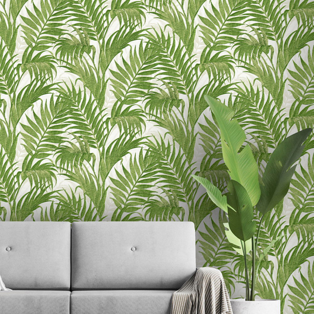 Transform your home with the Tropical Palm Leaf wallpaper, bringing a vibrant slice of paradise indoors. This striking design showcases a lively palm leaf pattern in fresh green and crisp white, perfect for injecting energy into living rooms, bedrooms, or statement walls. Crafted from durable, heavyweight vinyl, this wallpaper is exceptionally washable for effortless upkeep and easily peelable, allowing for simple updates whenever your style evolves. A bold yet refreshing choice for adding personality and a touch of the exotic to your interior décor.