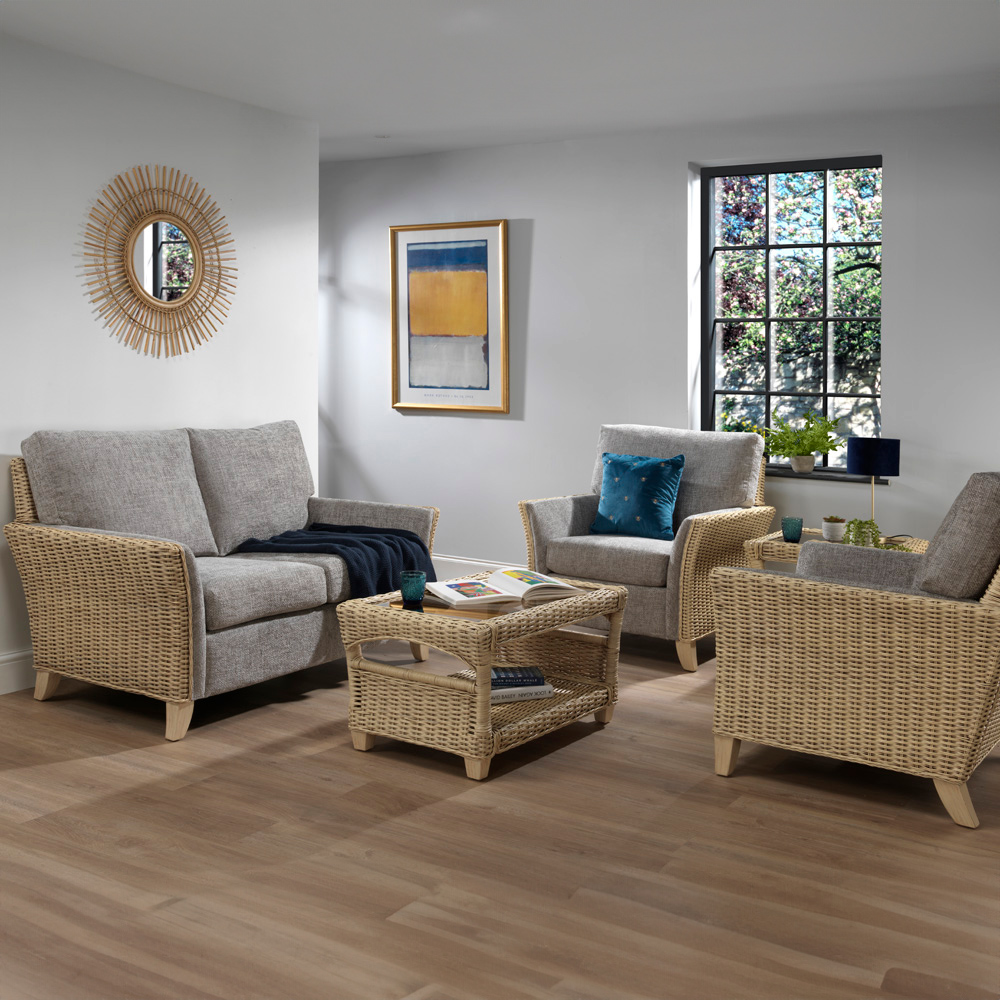 • Finished in a hand-crafted natural rattan frame