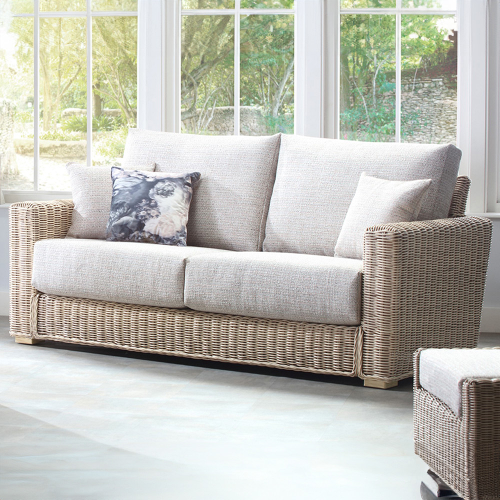 Desser Burford 3 Seater Blush Tweed Natural Rattan Sofa
