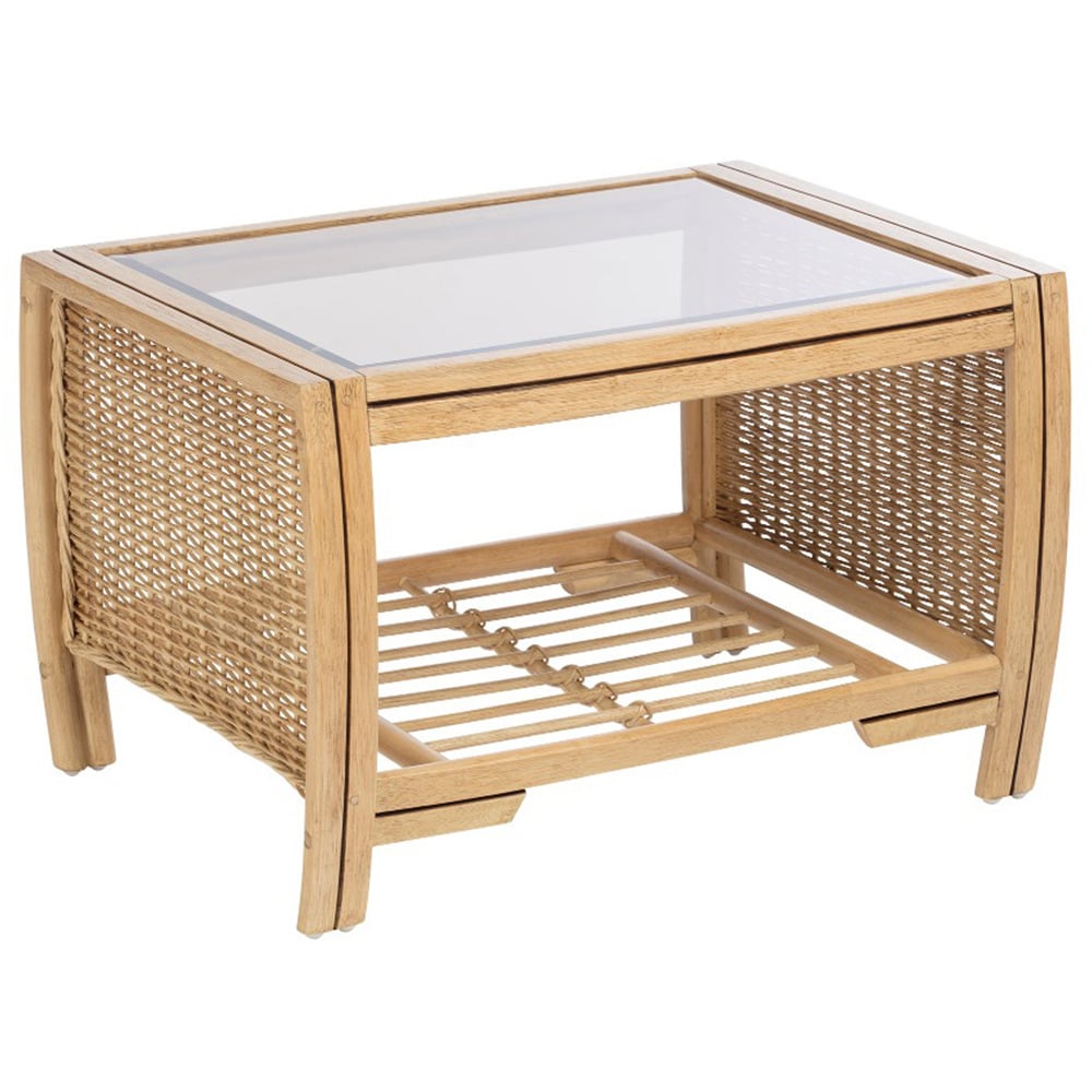 Elevate your living space with the Centurion. This stunning coffee table makes a statement with its handcrafted natural rattan frame and beautiful wicker detailing. Arching legs and a light oak finish add a touch of elegance, while the 5mm toughened glass top provides a safe and stylish surface for everyday essentials like cups, mugs, and plates, as well as ornaments. Need extra storage? The lower shelf, complete with woven sides to prevent items from slipping off, is perfect for books, magazines, or anything else you need close at hand. A perfect blend of style and practicality, the Centurion is equally at home as a standalone piece or as part of a coordinated collection.