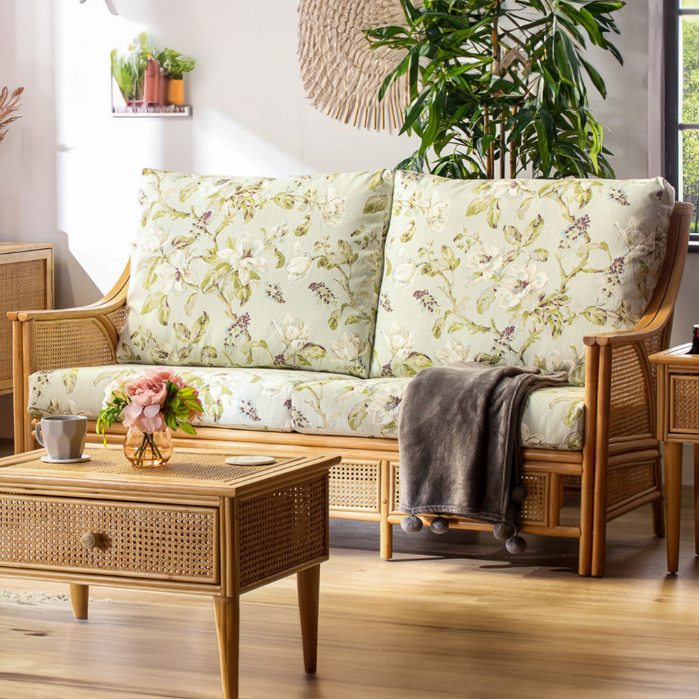 Desser Chester 3 Seater Natural Rattan Floral Fabric Sofa