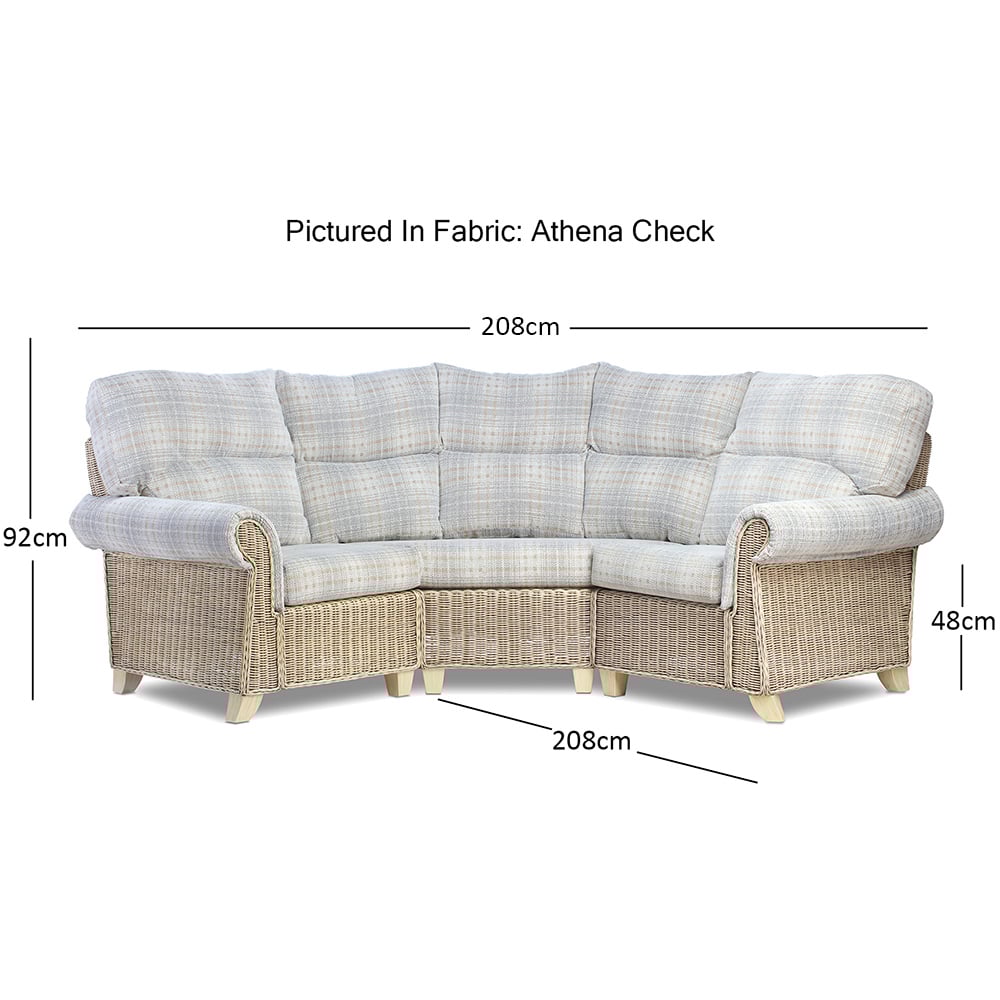 Transform your conservatory or living room with the Clifton 4-seater rattan corner sofa set. Its natural rattan frame and curved back create a perfect fit for rounded spaces, while thick, luxuriously comfortable cushions invite you to relax. The wrapped arms add to the inviting feel, and the easily removable (hook and loop fasteners) cushions are UK hand-sewn using reversible Athena check fabric (83% polyester, 17% viscose). Dacron warp prevents wear, ensuring lasting beauty. Enjoy optimal comfort with foam-filled seat cushions and supportive fibre-filled backs. Conveniently dry clean the removable covers to maintain their pristine look.